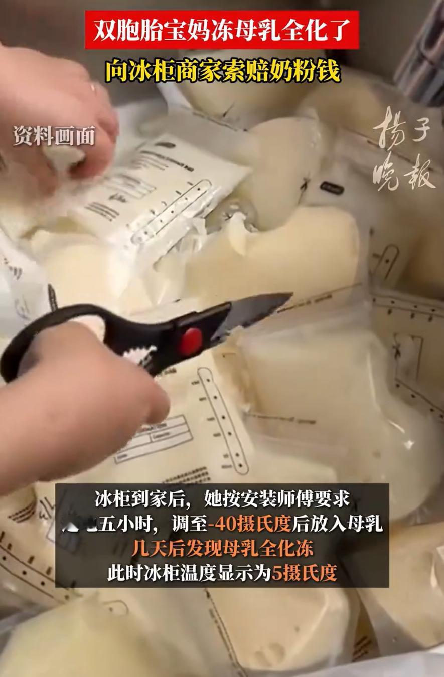 解释不清了!一位宝妈因为母乳过剩,就在网上购买了一个冷冰柜来储存,没想到,买回来还没几天,里面的母乳却全化了,原本-40摄氏度也变成了5摄氏度,他要求商家赔偿母乳,可对方却表示,最多赔100,甚至认为是宝妈手动改了温度 王女士介绍,她是9月生的双胞胎,本来母乳就来得多,结果其中一个孩子对母乳不适应,只能喝奶粉。剩下的母乳她舍不得倒,想着冻起来慢慢用,这个想法本身特别正常 为了这点母乳,她专门买了一台200升的深冷冰柜,卖点写得很清楚,能到零下40度。安装师傅上门后也交代了流程,通电、预冷、调温,一步没少,她才把母乳一袋袋放进去 几天后打开冰柜,所有母乳全化了,温度显示5度。对一个宝妈来说,这一刻不只是心疼,更多是慌。母乳不是普通食材,是孩子一口一口要喝的东西,一旦化了就基本报废,谁都不敢再给孩子吃 王女士立刻联系客服。客服一开始说,-40摄氏度只能维持24小时,之后会恢复到“初始温度5摄氏度”。王女士翻遍说明书也没找到这条说明。再问时,客服又改口说初始温度应该是-18摄氏度,还暗示可能是王女士自己调的温度 王女士觉得委屈,她没事去调温度干什么?这些母乳对她来说特别珍贵,是孩子的口粮 后来售后师傅上门检查,说冰柜本身没问题,只是压缩机没启动。但为什么温度会显示5摄氏度?师傅也解释不清。王女士怀疑这台冰柜存在质量问题,要求赔偿,可商家只肯赔100元 王女士算了一笔账:这些母乳如果换算成奶粉,相当于两个孩子两个月的量。她认为商家应该按这个价值赔偿,而不是随便给100元打发了事 其实很多宝妈都懂。母乳不是钱能简单衡量的东西。那是熬夜、疼痛、身体消耗换来的,是时间成本,是身体成本。你可以说市场上没有母乳定价标准,可你不能用没有标准来否认它的价值,更不能一句怀疑用户操作就把责任推干净 从消费角度看,这台冰柜的问题也不只是温度掉了这么简单。如果零下40只是短时模式,如果会自动回温,如果存在压缩机不启动的情况,这些信息本就应该在说明书和销售页面明确告知。消费者买的是稳定冷冻能力,不是开盲盒。设备标注深冷,结果几天内自行升温到冷藏区间,这种结果不管最后原因是什么,用户体验已经失败 不管最后协商结果如何,这个事都是一个提醒,购买特殊用途家电时要格外小心。保存母乳需要稳定的低温环境,普通冰柜可能达不到要求。消费者在购买前最好做足功课,选择靠谱的品牌,并保留好相关凭证