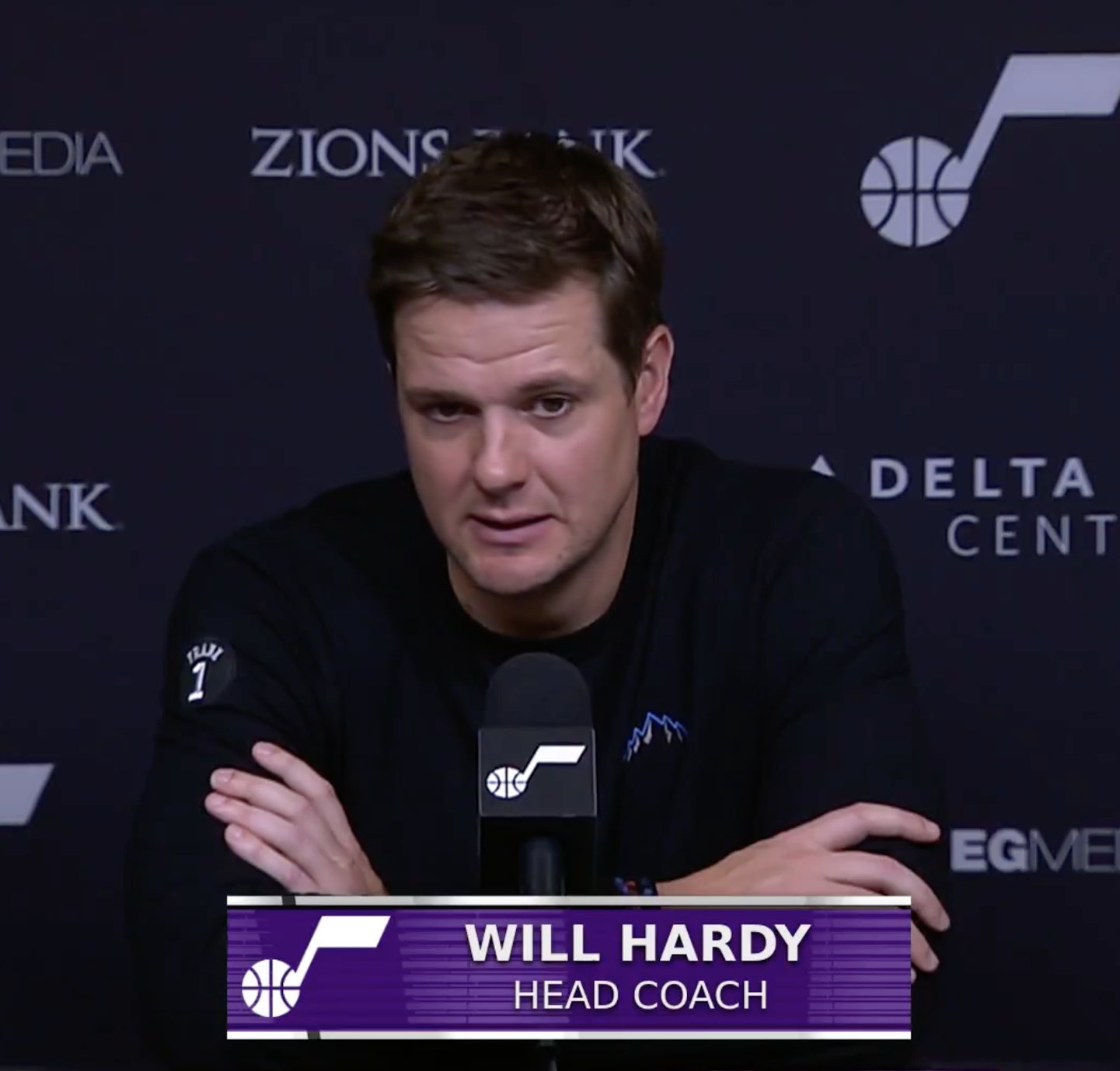 赛后爵士主帅威尔-哈迪接受了记者采访,在谈到主场氛围时,哈迪表示:“这真是一座非常特别的球馆。里面的声浪震耳欲聋……尤其是最近的呐喊声,真的格外震撼。”