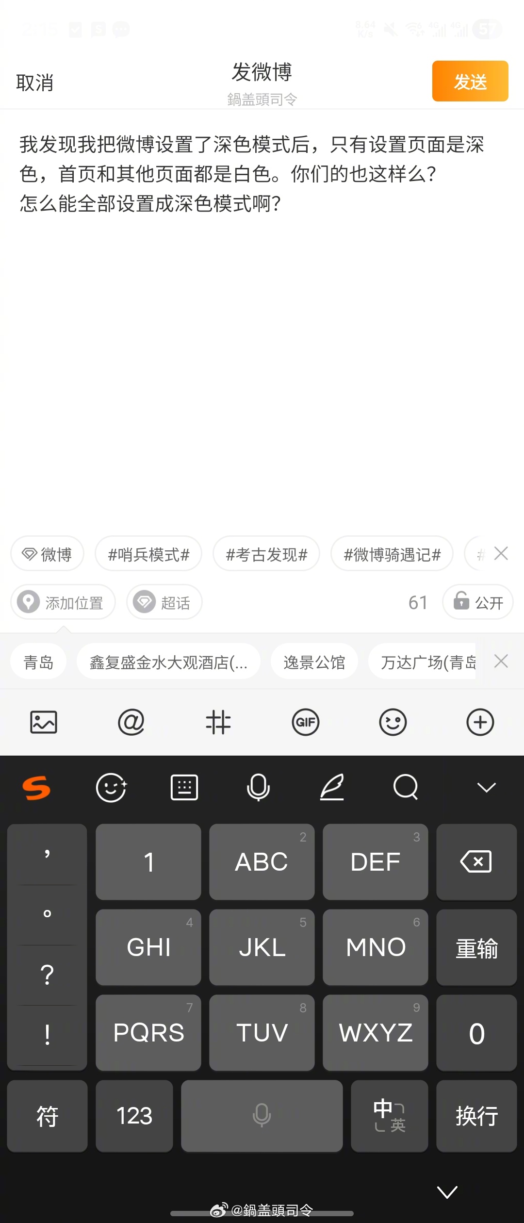我发现我把微博设置了深色模式后,只有设置页面是深色(图一),首页和其他页面都是白色(图二图三)。你们的也这样么?怎么能全部设置成深色模式啊?