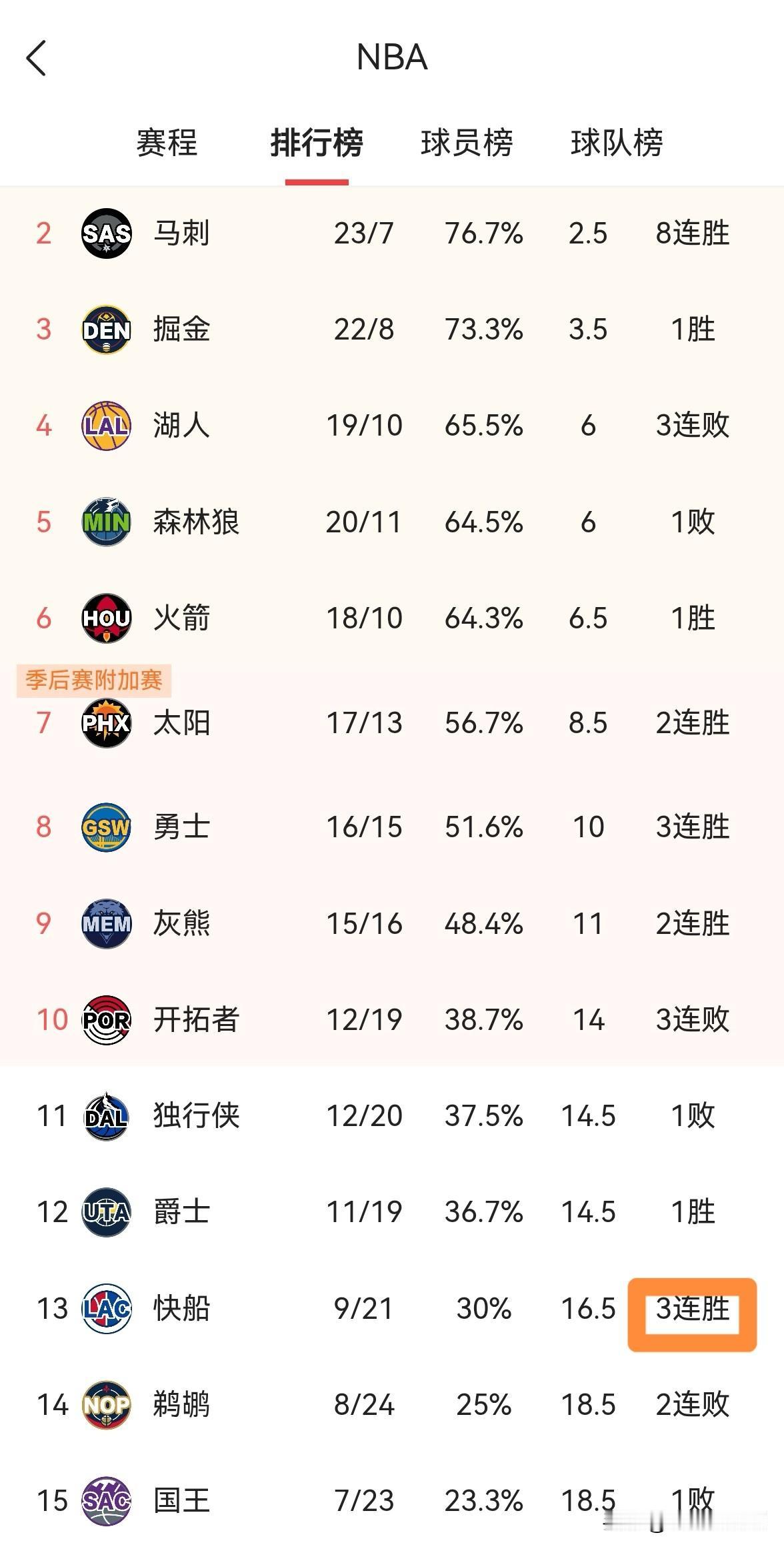 第6难度大,前面谁会掉呢?但是附加赛希望还是很大,就看管理层了,到底是冲季后赛还是摆