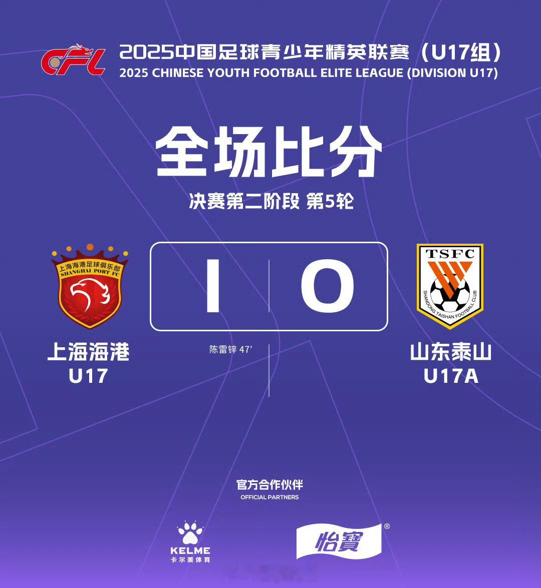 2025中国足球青少年精英联赛(U17组)决赛第二阶段第5轮赛果自由橙山东泰山