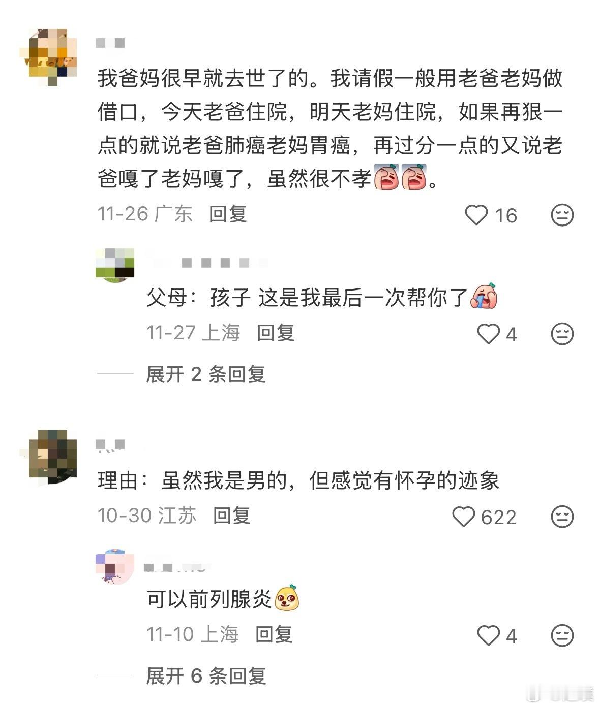 同事为了请假已经不择手段了拔牙是最好的请假理由1.牙疼有突发性,可以突击请假2.看牙可以去好几次,可以请好几次假3.看牙过程中不能看手机,不能回复工作消息,有时甚至不能说话4.牙的病不传染,没有后遗症,也算不上大病,不会被歧视5.是不是真的牙疼,从外表看不出来6.男女老少通用