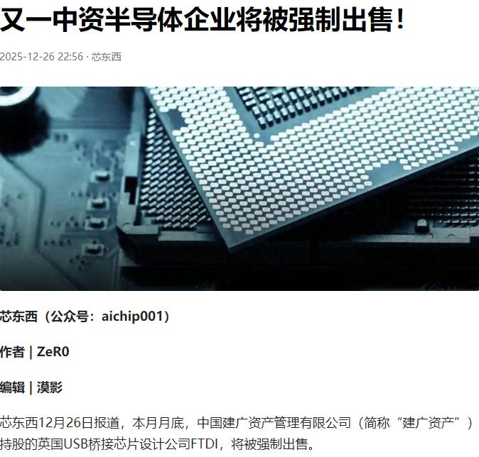英国又出手了!继荷兰强夺中资持有的安世半导体之后,伦敦也以“国家安全”为名,逼迫中国建广资产交出其在FTDI公司80.2%的股权。 可能有人还不清楚 FTDI 是做什么的,简单说,USB桥接芯片就是让电脑、手机、工业设备等不同电子产品能通过USB接口顺畅传输数据、实现互联互通的“桥梁”,小到我们日常用的打印机、移动硬盘,大到汽车电子、医疗设备、工业控制系统,都离不开这类芯片的支持。 成立于1992年的FTDI总部在英国格拉斯哥,其产品在全球USB桥接芯片市场的占有率接近20%,拥有从芯片设计到配套软件的完整生态,是全球供应链里不可或缺的重要一环。 了解了FTDI的分量,再看这起事件就更清楚其中的蹊跷。2021年12月,中国建广资产通过在英国注册的子公司,斥资4.14亿美元,合法收购了FTDI公司80.2%的股权。 这笔交易当时完全符合英国的相关法律法规,也经过了当地监管机构的认可,本质上就是一场正常的商业投资——中国企业看中了FTDI的技术优势,希望借此弥补国内在高端接口芯片领域的短板,完善半导体产业链;而FTDI也能获得更多资金支持,拓展全球市场,原本是双赢的局面。 可谁也没想到,三年后的今天,英国政府突然翻脸不认人,拿出“国家安全”这个万能借口,一纸政令要求建广资产必须在规定时间内,把这80.2%的股权全部出售。 可英国用来支撑这一决定的《国家安全与投资法》,是2022年1月才正式生效的,也就是说,他们用一笔交易完成后才出台的法律,去追溯审查之前的合法交易,这种“秋后算账”的操作,在任何讲究法治精神的国家看来,都是站不住脚的。 而离谱的是,这个“国家安全”的理由本身就漏洞百出。数据显示,2024年FTDI在英国本土的销售额只有363万美元,连公司总营收的零头都不到,这样的体量怎么可能威胁到英国的关键基础设施? 毕竟USB桥接芯片技术是全球通用标准,美国、德国等多个国家的企业都在生产,根本不是什么需要保密的敏感技术。说白了,英国所谓的“国家安全”,不过是用来打压中资、干预正常商业活动的借口。 熟悉国际时事的朋友可能会觉得这一幕似曾相识,没错,就在不久前,荷兰政府也曾上演过几乎一模一样的戏码。荷兰政府以“国家安全”为由,试图强行夺取中资控股的安世半导体的控制权,冻结公司全球运营,甚至暂停中方CEO的职务,引发了全球产业链的震荡。 虽然最终荷兰迫于压力放弃了接管计划,但这场风波已经让全球投资者看清了西方某些国家的真实面目。 如今英国紧随其后,这显然不是孤立的偶然事件,而是美欧等国在科技领域系统性遏制中国的又一步棋。 这些国家嘴上喊着“市场化”“法治化”,标榜自由公平的营商环境,可实际上却把商业行为政治化,只要是中资收购的优质科技资产,就动辄拿“国家安全”说事,用行政手段强行干预。这种做法不仅严重损害了中国企业的合法权益,更彻底破坏了全球商业赖以生存的契约精神。 要知道资本的信心源于稳定的预期和可靠的规则,英国这次开了个坏头,意味着今后任何国家的投资者在英国投资,都要担心自己的资产会不会因为政治原因被强行剥夺,这种朝令夕改的营商环境,最终只会反噬英国自身的经济发展。 面对英国的无理要求,中资企业也没有坐以待毙,建广资产曾向英国高等法院申请临时禁令,试图阻止强制出售,并提出了详细的风险缓解措施,主动展现了协商解决的诚意。 但令人遗憾的是,英国高等法院不仅驳回了申请,甚至都没有要求英国政府提供具体的“安全风险”证据,相当于默许了这种没有事实依据的强权行为。这种司法不公的背后,是政治力量对商业和法律的公然干预。 从荷兰的安世半导体到英国的FTDI,我们能清晰地看到,西方某些国家正在用各种手段把中国排除在全球高端半导体产业链之外,企图卡住中国科技发展的脖子。 但他们似乎忘了,全球产业链的形成是市场选择的结果,是各国分工协作的产物,强行割裂产业链、破坏供应链稳定,最终只会损害全球经济的发展。 对于中国企业来说,这些事件也敲响了警钟,海外投资需要更加警惕政治风险,做好风险防控。 说到底,商业就是商业,不能被地缘政治绑架。英国用“国家安全”的借口打破商业规则,或许能逞一时之快,但最终失去的将是全球投资者的信任。 在经济全球化的今天,任何试图搞阵营对立、破坏公平竞争的行为,都注定会遭到市场的惩罚。