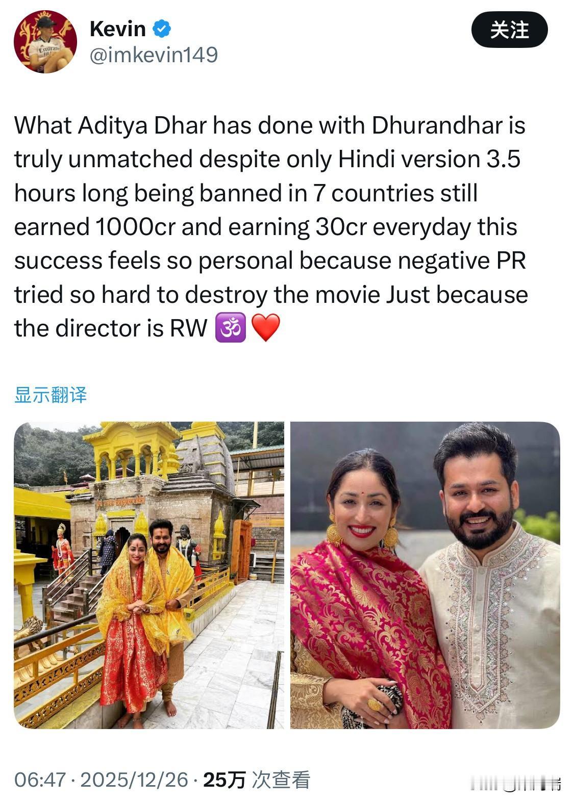 由阿迪亚·达尔(Aditya Dhar,代表作《乌里:外科手术式打击》)执导的《杜兰达尔》(Dhurandhar,意为“中流砥柱”或“勇士”)是一部 2025 年上映的印度现象级谍战动作大片。 1. 基本信息与票房成就 导演:阿迪亚·达尔 (Aditya Dhar) 主演:兰维尔·辛格 (Ranveer Singh) 领衔,卡司还包括阿克夏·卡纳、桑杰·达特、R·马德哈万和阿俊·兰帕尔等实力派演员 上映日期:2025年12月5日 票房表现:该片在上映 21 天内全球票房即突破 1000 亿卢比(约 1000 Crore),成为 2025 年印度票房最高的电影,也是印度影史第 9 部进入“千亿卢比俱乐部”的作品 2. 剧情概要 影片背景设定在南亚次大陆,讲述了一场跨越十年的印度情报行动。 核心故事:兰维尔·辛格饰演一名年轻的印度情报机构(RAW)特工 Hamza,他潜入巴基斯坦卡拉奇的地下世界,试图拆散三合会、政治势力与恐怖主义相互勾结的网路 真实事件改编:剧本融合了多个真实的真实历史事件,包括 1999 年 IC-814 劫机事件、2001 年印度议会遇袭以及 2008 年孟买连环恐怖袭击等 3. 影片特色与评价 超长片长:该片片长达 214 分钟(约 3.5 小时),是印度影史最长的电影之一 制作风格:电影采用了“慢热”式叙事,前半部分细致勾勒地缘政治与犯罪网路,后半部分则以极具张力的动作戏和肾上腺素飙升的转折著称 社会争议:由于对印巴紧张局势及争议性历史事件的直白刻画,该片在印度和巴基斯坦两地引发了广泛的社会讨论与政治争论 4. 后续计划 《杜兰达尔》被设计为一个两部曲系列,其续集《杜兰达尔 2:复仇》(Dhurandhar: Part 2 – Revenge)已定档于 2026 年 3 月 19 日上映