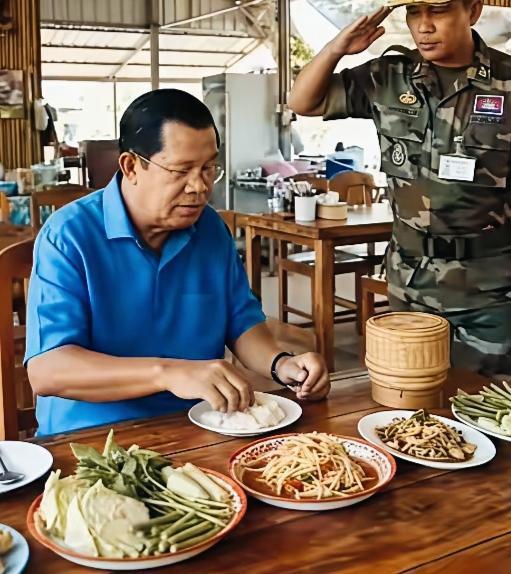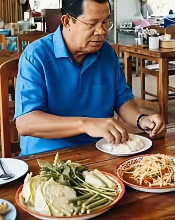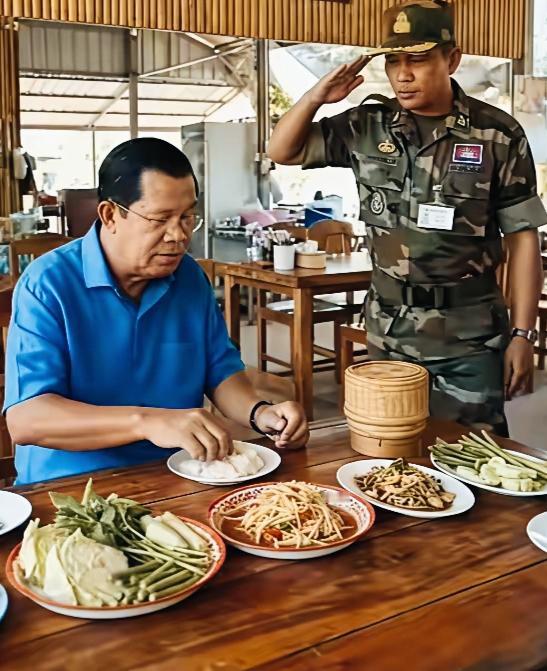 该说不说哈,人家洪森是一国首相,你看人家吃的多简朴。一桌子全是素菜,没有一疙瘩肉