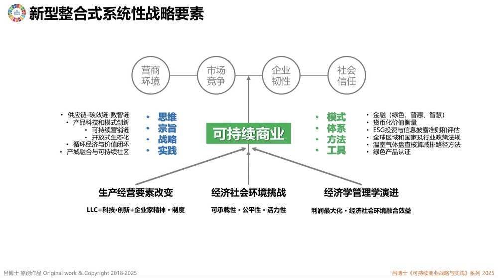 新型整合式系统性可持续商业战略要素,图源:吕建中著《可持续商业战略与实践》,2025