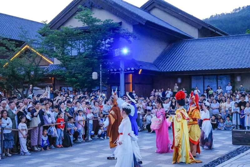 值得一提的是,黄梅县以戏旅融合为重点,推出东山问梅村机器人戏曲表演、黄梅宴沉浸式戏曲主题餐秀等新业态,开发“照婵娟”等系列文创产品,积极推进黄梅(长江)文化旅游度假区等文旅项目,进一步丰富黄梅戏的场景化应用、具象化表达。