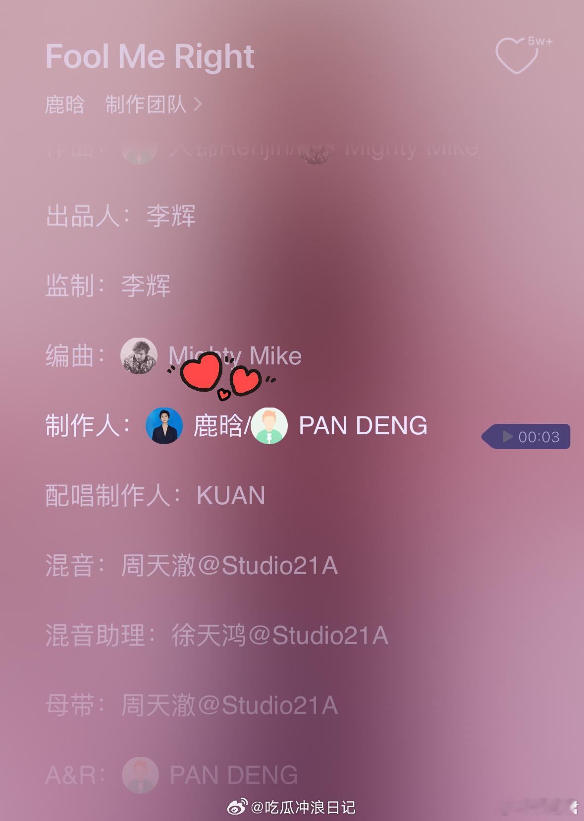 制作人鹿晗又上新了 鹿晗作为制作人真的太会了!第12首作品《Fool Me Right》太对味了,强劲节拍裹着温柔声线,自由感直接拉满,根本停不下来!
