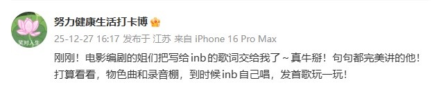 糖小幽:电影编剧姐们把写inb的歌词交给我了 句句都完美讲他!