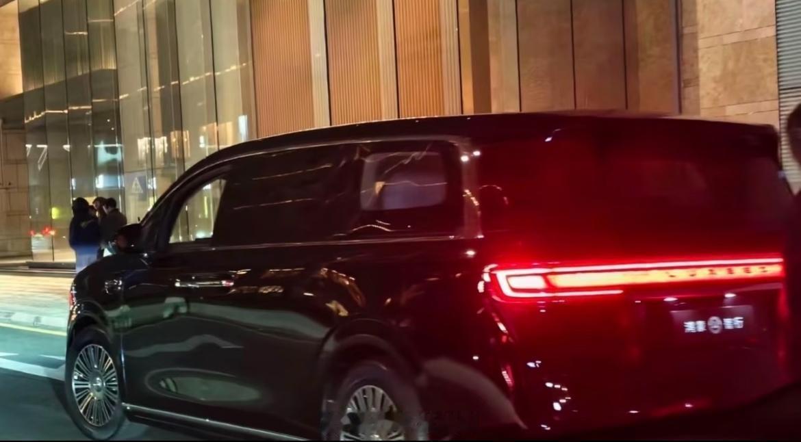 昨晚看到的鸿蒙智行首款MPV曝光了,伪装撕掉了,然后前灯和尾灯都已经亮起来了,看