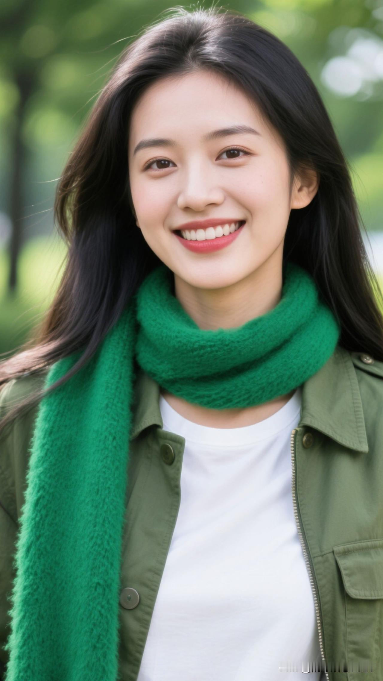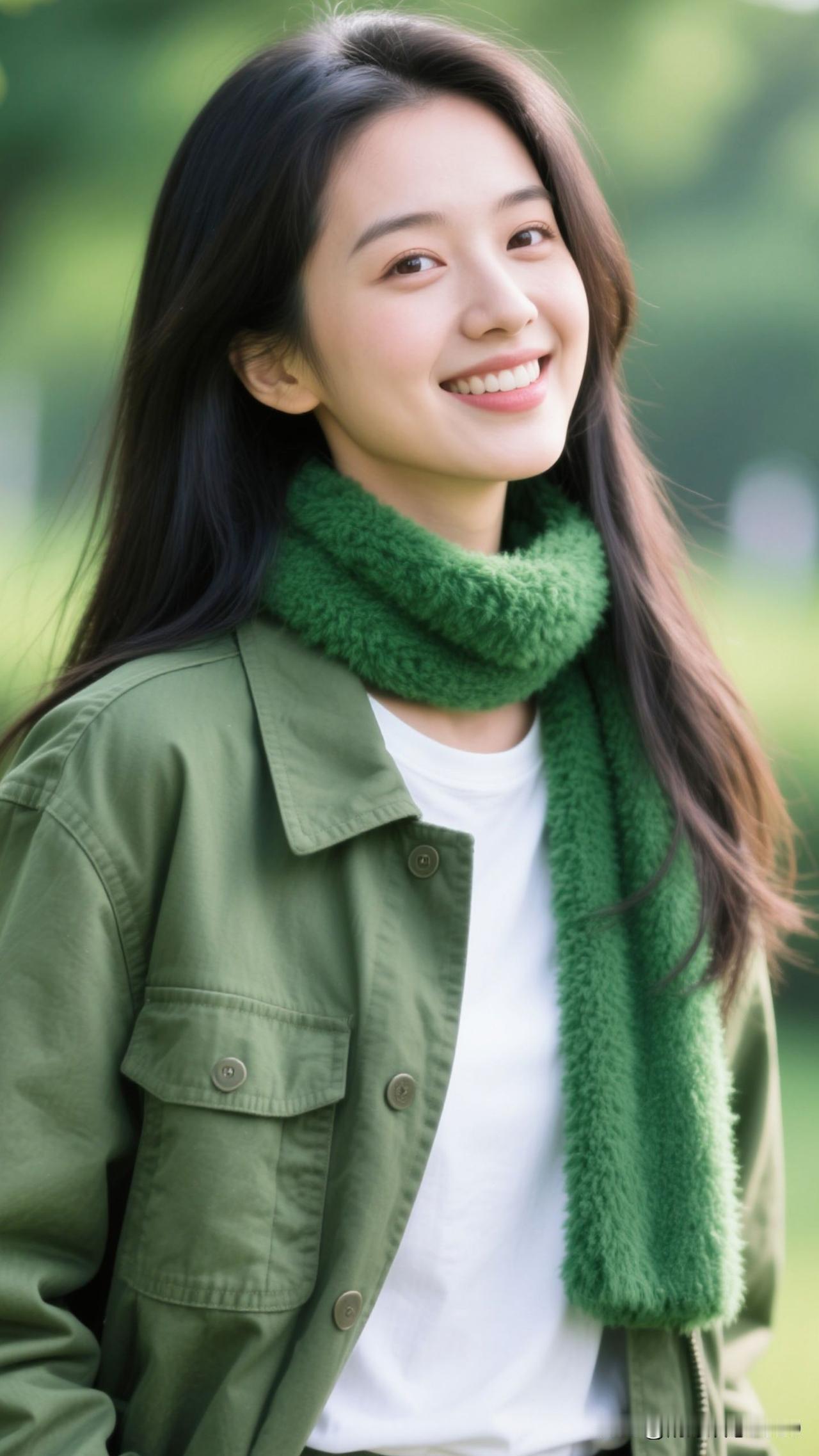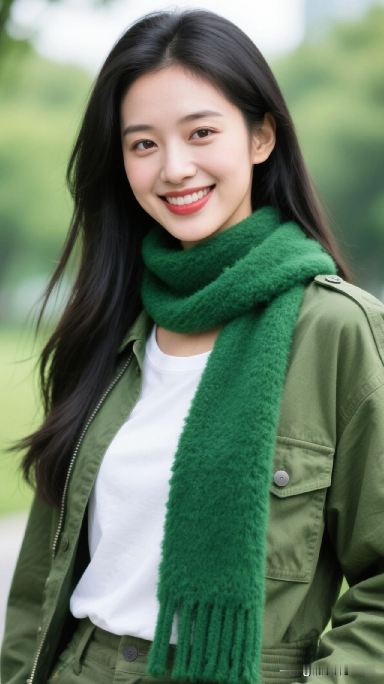 ✨ 把草木的鲜、绒巾的软织进穿搭,她站在那里,就是自然与鲜活的共生注脚。绿色森林