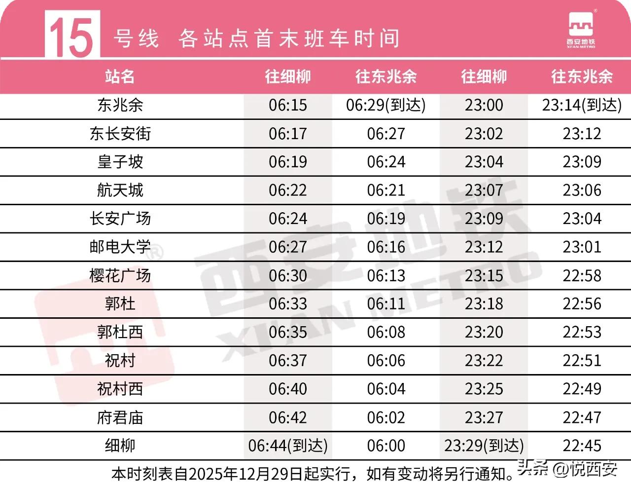 刚刚,西安地铁官宣15号线一期定于12月29日11时开通初期运营,至此线网运营总里程定格在422公里。运营方面,全天服务时间17小时31分钟,初期最小发车间隔为5分30秒,单程时长约29分钟。西安地铁 西安生活