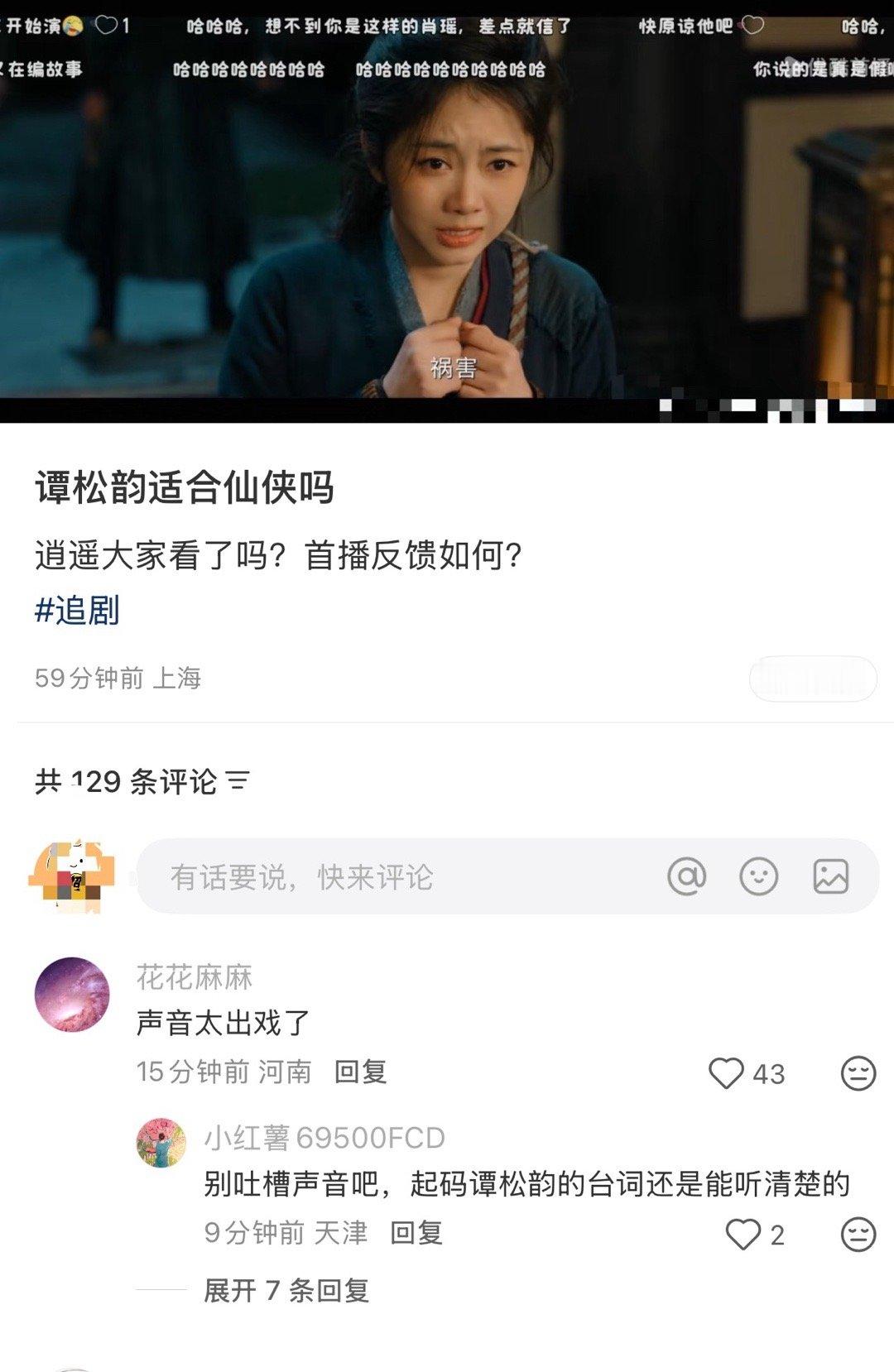 谭松韵逍遥人设谭松韵的声音非常出戏,不知道哪来的自信用原声,颜值我就不多说了,劝退级别,姐你好好的主流剧不演为什么要拍古偶啊,古偶虽然容易吸粉但也要建立在颜值基础上啊……请女演员都有点自知之明吧,别坏了自己的好口碑,现在路人都在吐槽,演员要懂得爱惜羽毛。逍遥