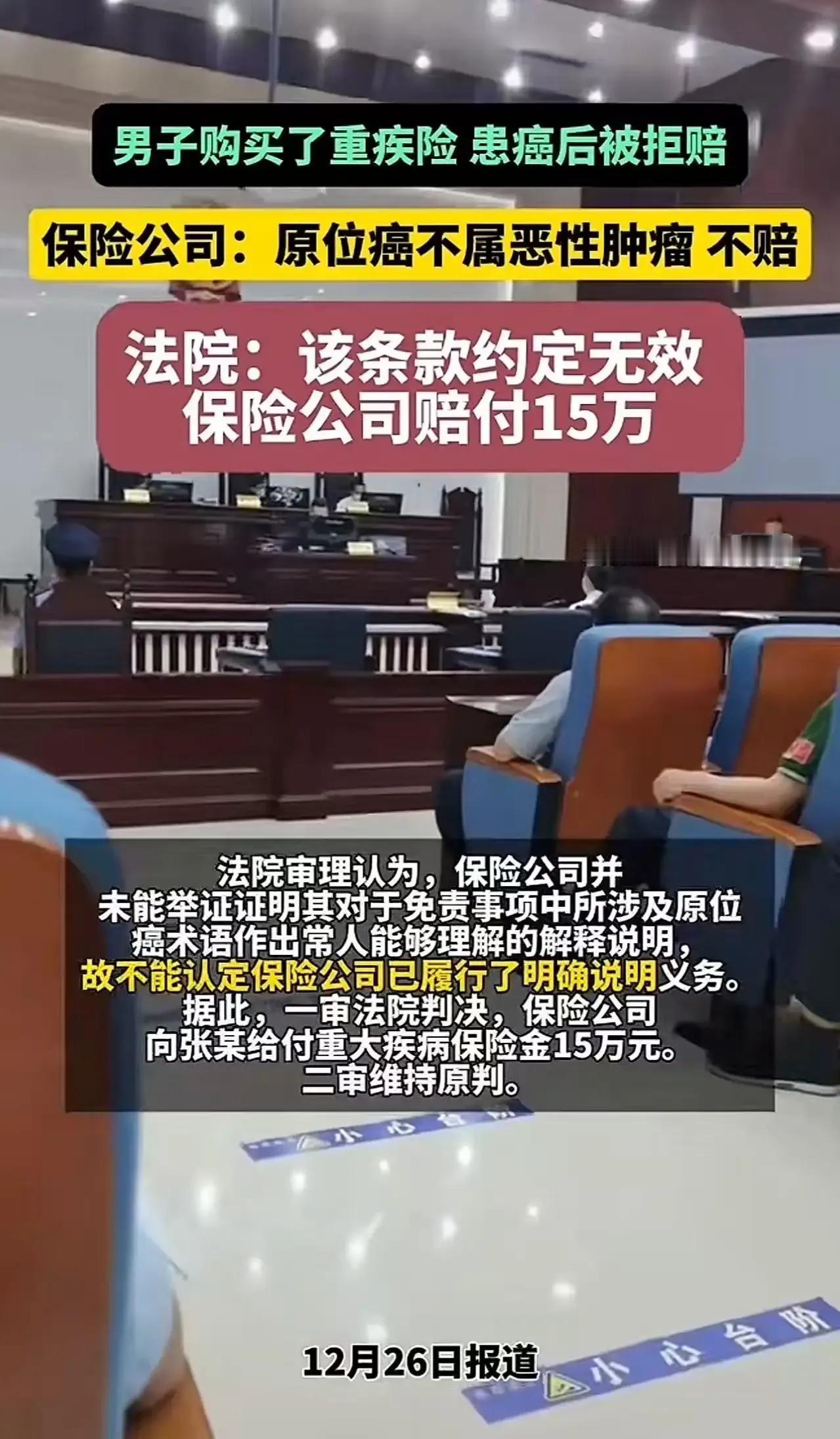 “这次保险公司输了!”男子长期坚持购买保险,患癌后申请理赔却遭保险公司拒赔!保险公司:“原位癌不属恶性肿瘤,不赔!”网友:投保时啥都赔,出险时,这也不赔,那也不赔!简直颠覆了三观! 这场看似简单的理赔风波,却折射出一个让人深思的社会现象。有人说,买保险就是为了“未雨绸缪”,可是当真正需要用到保障的那一刻,却发现“规则”变了样。男子坚持多年投保,梦想着在生命的关键时刻得到一份保障,可当癌症来袭,他却迎来了一纸拒赔通知。保险公司冷静地说:“原位癌不属于恶性肿瘤,不在赔付范围内。”这句话像一把利刃,刺得许多人的心都疼了。 为什么会出现这样的差异?为什么投保时承诺“只要符合条件,理赔就没有问题”,但出险时却变得如此模糊和苛刻?难道保险变成了一场“欺骗游戏”?还是我们对保险的认知本身就存在盲点? 其实,这背后隐藏着更深层次的“人性考验”。保险公司在合同条款中设下了层层防线,似乎是在保护自己不被“骗赔”,但这是否也在无形中剥夺了消费者应有的权益?而我们普通人,又在签订合同时,是否真正理解了那些复杂的条款?是不是每个人都像买房买车一样,仔细研读了那些长得像“天书”的合同? 更令人心碎的是,许多像男子一样的患者,他们曾经满怀希望地相信“保险会在关键时刻帮我一把”。但现实却让人失望。有人说:“买保险,就是买个心理安慰。”可当真正遇到困难时,才发现这份“安慰”变成了空话。它究竟是保障,还是一种“伪保障”? 这场风波,激起了网友们的愤怒,也引发了全民的反思。我们到底该相信什么?保险的“真面目”到底是什么?是不是我们被“套路”得太深了?还是保险公司在“利益”面前,逐渐忘记了最初的承诺? 或许,我们应该从这次事件中学到些什么。保险,既是一份保障,也是一份责任。它不应该成为“看似美好,实则冷酷”的交易,而应成为守护每一个家庭、每一个生命的温暖力量。只有这样,才能让“保险”这个词,真正成为我们信赖的守护神,而不是让人心碎的“骗局”。 读到这里,你是不是也在心里暗暗叹息?你是否也曾因为一份保险而心存期待,却在关键时刻感受到失望?欢迎在评论区留言,让我们一起探讨,如何让保险变得更透明、更有温度,让每一个需要帮助的人都能感受到一份真正的守护。保险重大疾病 重疾保险拒赔