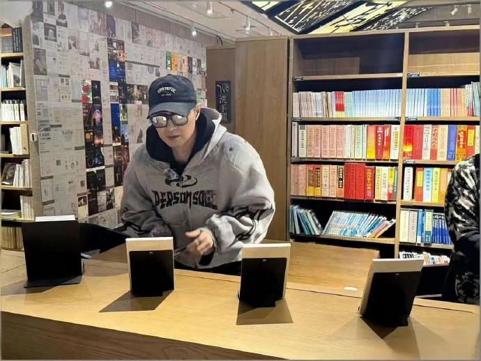 54岁汪峰现身长沙某书店,他穿着时尚有型,但皮肤暗黄,岁月感明显,大方邀请粉丝喝