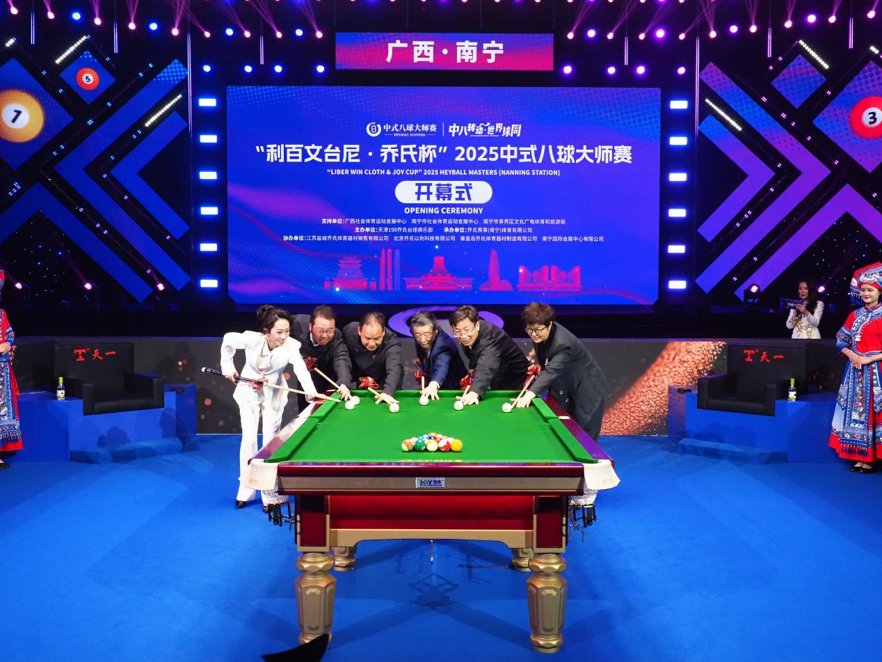中八转动,世界球同!12月25日晚,“利百文台尼·乔氏杯”2025中式八球大师赛超级分站赛(南宁站)在这座被邕江滋养、青山环抱的绿城南宁盛大启幕!在亿万球迷的殷切期待中,全球顶尖运动员跨越千山万水齐聚南宁,共同角逐中式八球至高荣誉!