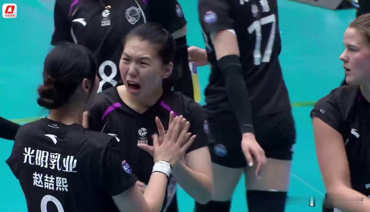 李珊、袁心玥观战津沪大战,天津女排表现不俗,先胜一局。第二局双方战至35平,蔡斌