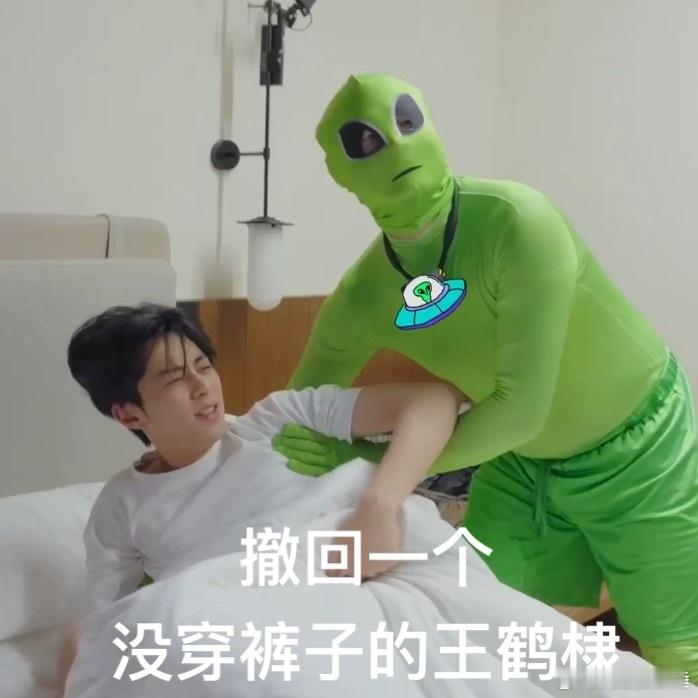 王鹤棣你不能再酷了,因为你没穿裤子就差点被外星人拖走了, 的外星人还蛮有人情味的,知道棣棣没穿裤子还给塞回被窝,王鹤棣你请外星人们吃顿饭吧,真没招了!