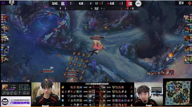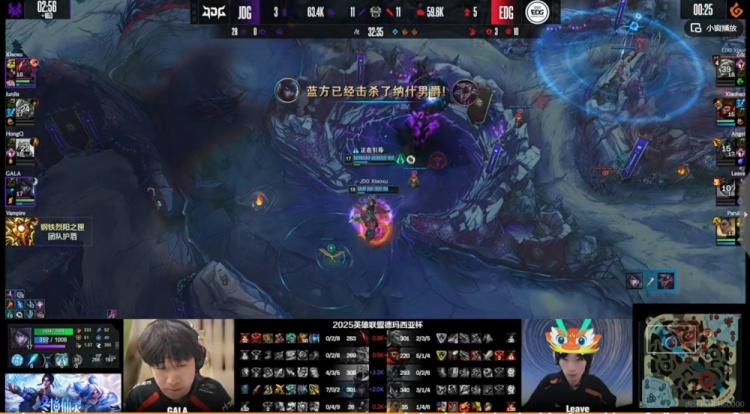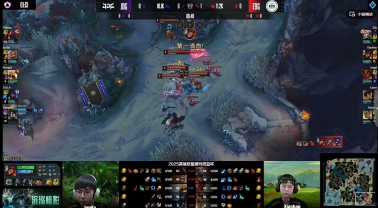 [25:25]JDG开打大龙,侧翼HongQ沙皇再次被秒,正面拦人的Xiaoxu塞恩也被集火强杀!JDG拿下大龙!EDG再次打出0换2,拆掉JDG的中下双二塔!