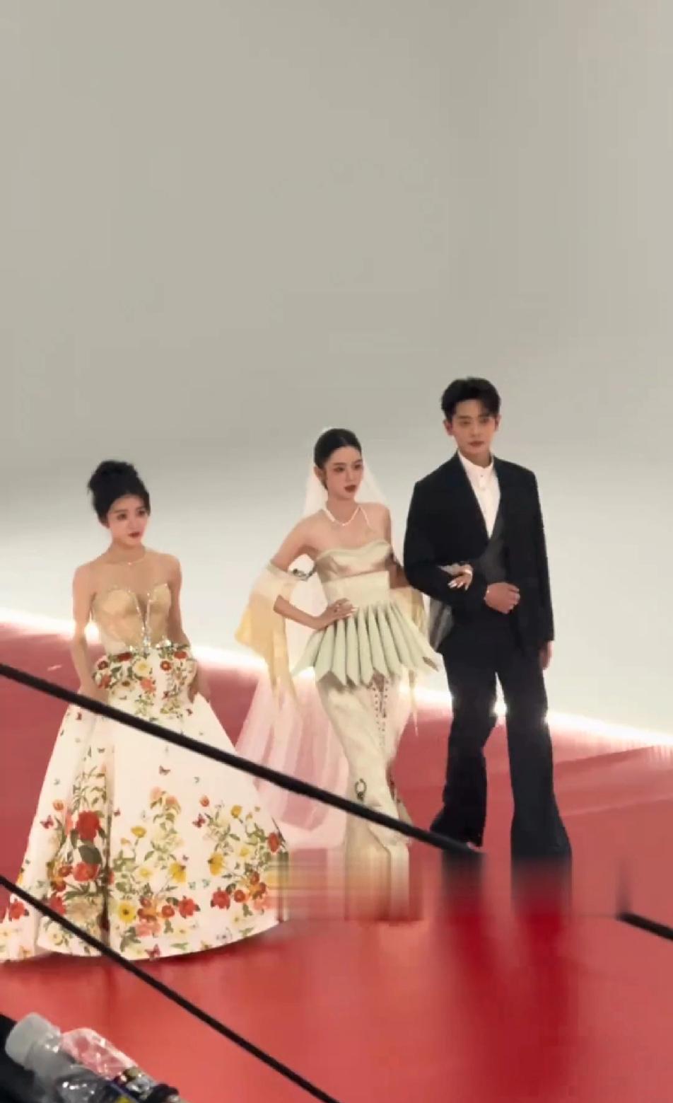 周也旁边的女生有点惨,裙摆又沉又大,只能自己提着,丞磊只顾扶着周也,两人有说有笑,一看关系就很好很融洽,旁边的女生看着有点落寞,存在感好低,感觉丞磊应该站在中间,可以两个女孩都顾及到,饶嘉迪这么大的裙子再配上恨天高真的不好走,丞磊好歹在中间也扶一下,幸好周也还把饶嘉迪往中间拉了一下,不然小姐姐都不在镜头里了,毕竟饶嘉迪才03年的,还是没有什么经验……周也 丞磊