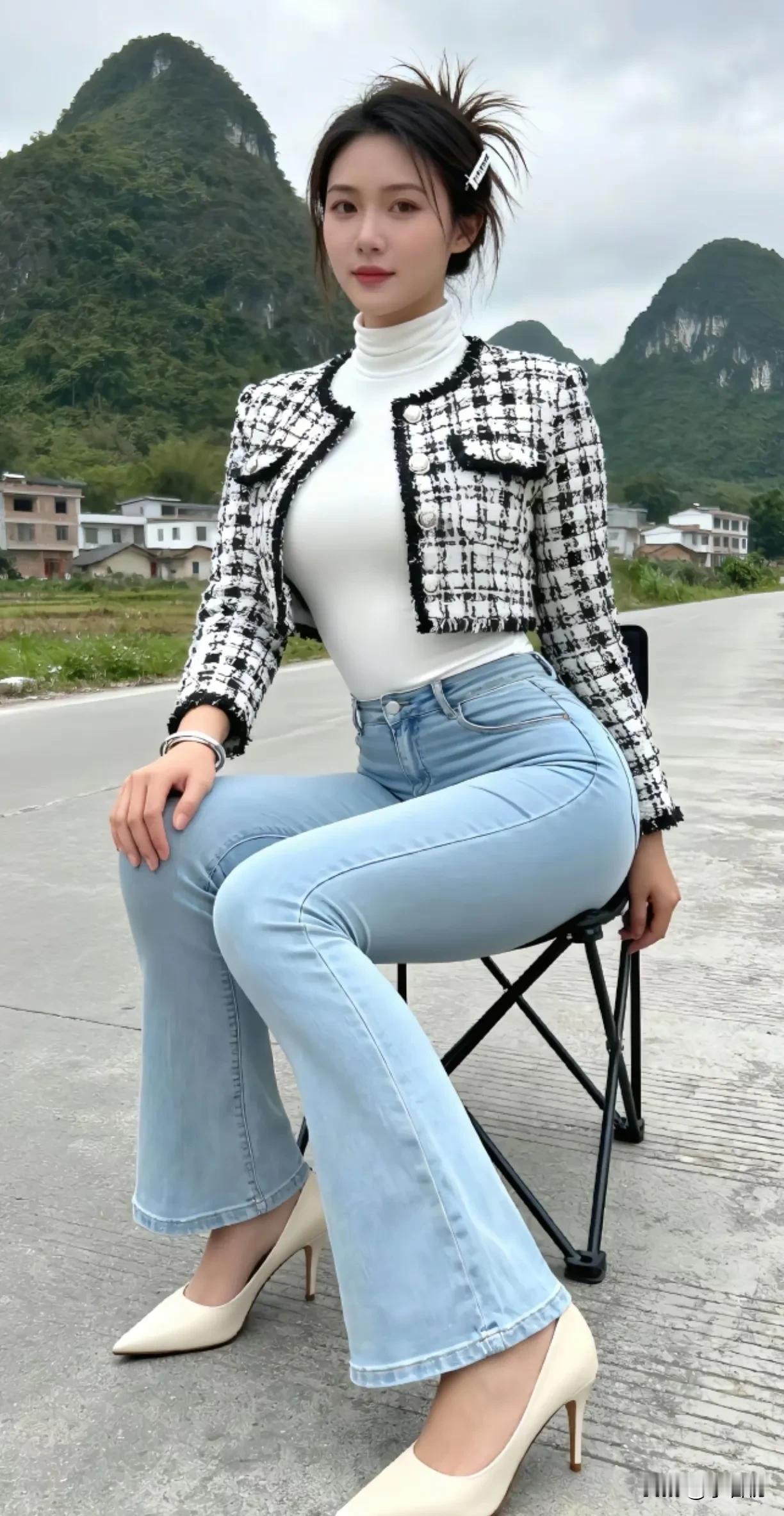 《峰途雅韵》 青峰叠翠绕烟村,驿路晴光映远暾。 素褐裁纹凝雅韵,轻蓝曳裾漾清痕。 鬟边银玦绾云髻,腕底晶环衬玉温。 野凳闲依观屏影,长衢斜倚听风喧。 纤腰漫转峰前道,细步徐移陌上垣。 玉指轻翻屏上字,明眸暗数岭头暾。 山风拂袖凉生袂,云日烘衣暖透髡。 峰色苍苍迷曲径,溪声汩汩入荒樊。 倚凳静看云舒卷,立路闲观鸟翩翻。 绣履轻沾阶畔露,蓝裾漫拂陇头荪。 林梢鸟唱晴光里,陌上蝉鸣晚照暾。 旧事萦心挥不去,新愁入目思腾骞。 晴郊路转峰峦异,野径风回草木蕃。 手把触屏凝睇久,身依孤凳寄情暄。 岩前细草承朝露,溪畔闲云逐落暾。 久坐峰边云影乱,行吟陌上鸟声谖。 罗衣拂处藤花坠,绣履行时藓径掀。 望断青山云外影,思随流水涧边湲。 峰峦静锁柴门闭,竹径深藏野老藩。 碧涧流泉鸣玉珮,青山凝翠拥金暾。 袖中香惹兰苕气,鬓畔光浮玉井髡。 漫把闲愁酬野景,聊将幽绪付烟暾。 峰前独步心如水,驿路凝眸意自燔。 目送归云林影里,心随倦鸟日西暾。 晴川渺渺情无尽,翠岭苍苍思未偾。 罗袜尘生芳草径,锦衣香拂绿杨髡。 吟残峰曲风前调,醉倚松阴月下樽。