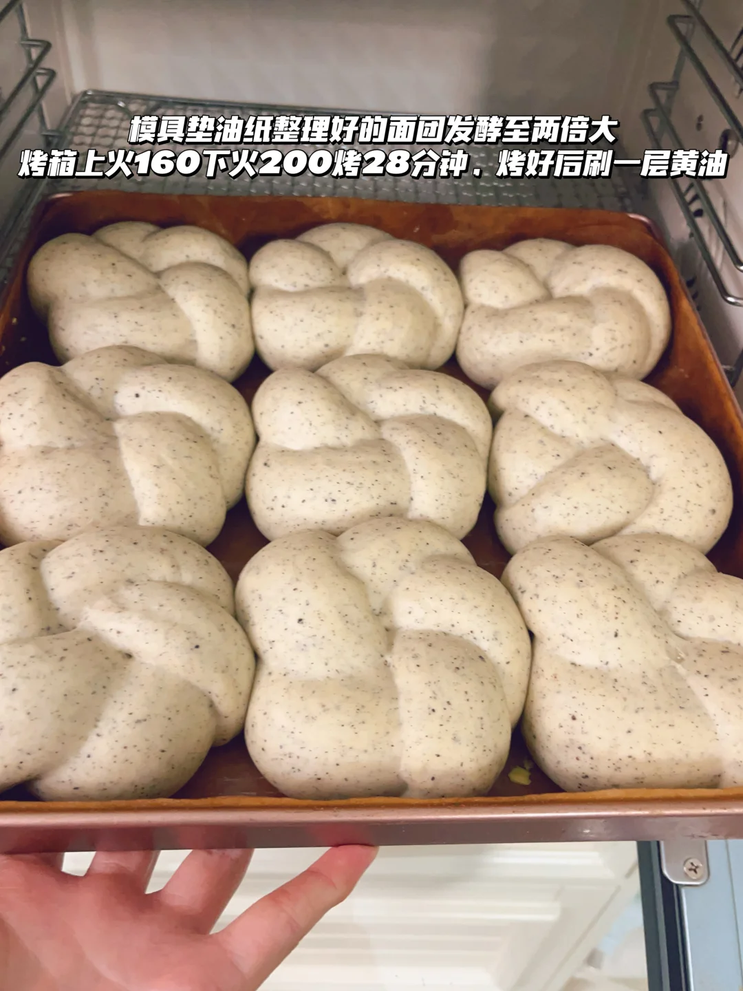 5⃣️面团发酵好后烤箱提前预热,上火160下火200放在下层烤28分钟