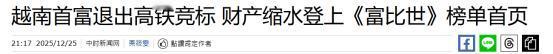 重大开工后沦为世界笑料!2025年12月25日,越南首富的一个举动,让全世界看了越南高铁的笑话! 越南的高铁项目计划是贯彻越南全境,北起河内市南至胡志明市,中途途径20多个省市。自这一项目被成立以来,就成为了国际关注的焦点。 越南在成立这一项目的时候,是准备借鉴日本新干线的经验,但是随着我国高速铁路技术的崛起,越南开始在中日两国之间辗转徘徊。 就在国际认为这一高铁项目,最终会花落中国或日本的时候,越南却选择同德国西门子签约。此事立即成为全球焦点事件,就在国际高度关注越南高铁项目的时候,越南首富的一个举动,直接让这一个项目成为全球笑料。 2025年10月25日的时候,越南首富范日旺旗下的集团,重磅宣布退出价值670亿美元的铁路竞标。此举让其集团以及多家子公司股价下跌,范日旺的身价单日直接蒸发了19亿美元。 也正因此,致使他退出的背后原因成为了众多网友讨论的焦点。他之所以会选择冒着如此大的风险退出,或许是出于避险的目的。 这一高铁项目需要斥巨资,但越南的财政明显不足,所以难以进行匹配。如果竞标成功,也就意味着范日旺及旗下集团要为之去兜底。 这或许就是他会选择退出的主要原因,而这就直接证明了越南的财政困境。在其退出之后,项目或许会再次陷入停滞阶段。 对此,您怎么看?欢迎评论区留言您的看法,我们一起讨论一下。 (信息来源:越南首富退出高铁竞标 财产缩水登上《富比世》榜单首页-中时新闻网)