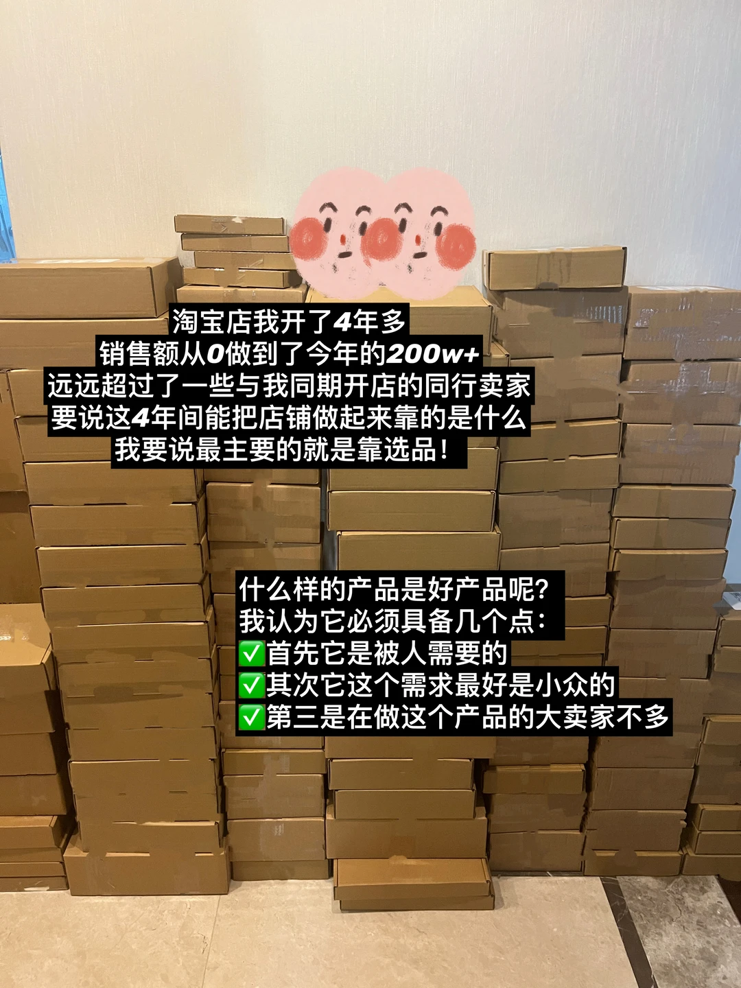 4年时间,我把我的淘宝店销量从0做到了今年的200w+,比不少同期开店的同行卖家走得顺,要说这4年间能把店铺做起来靠的是什么,我敢说选品是坠重要的一环!