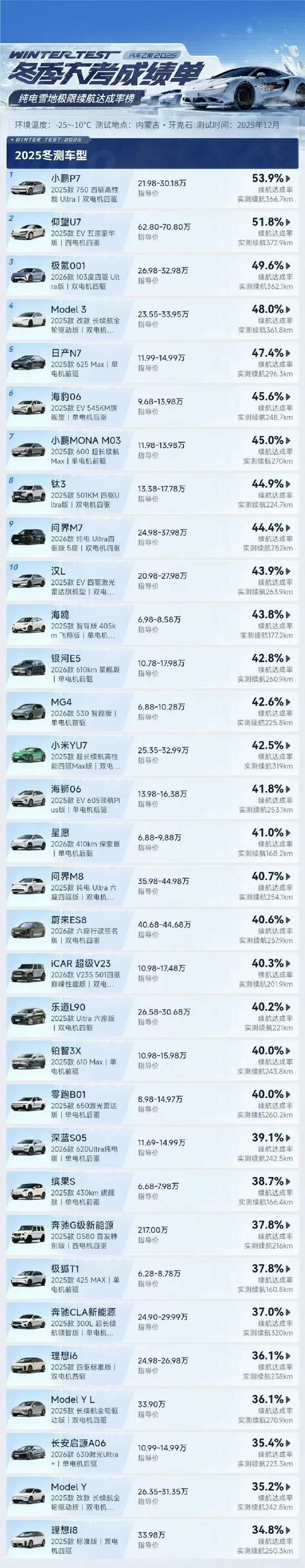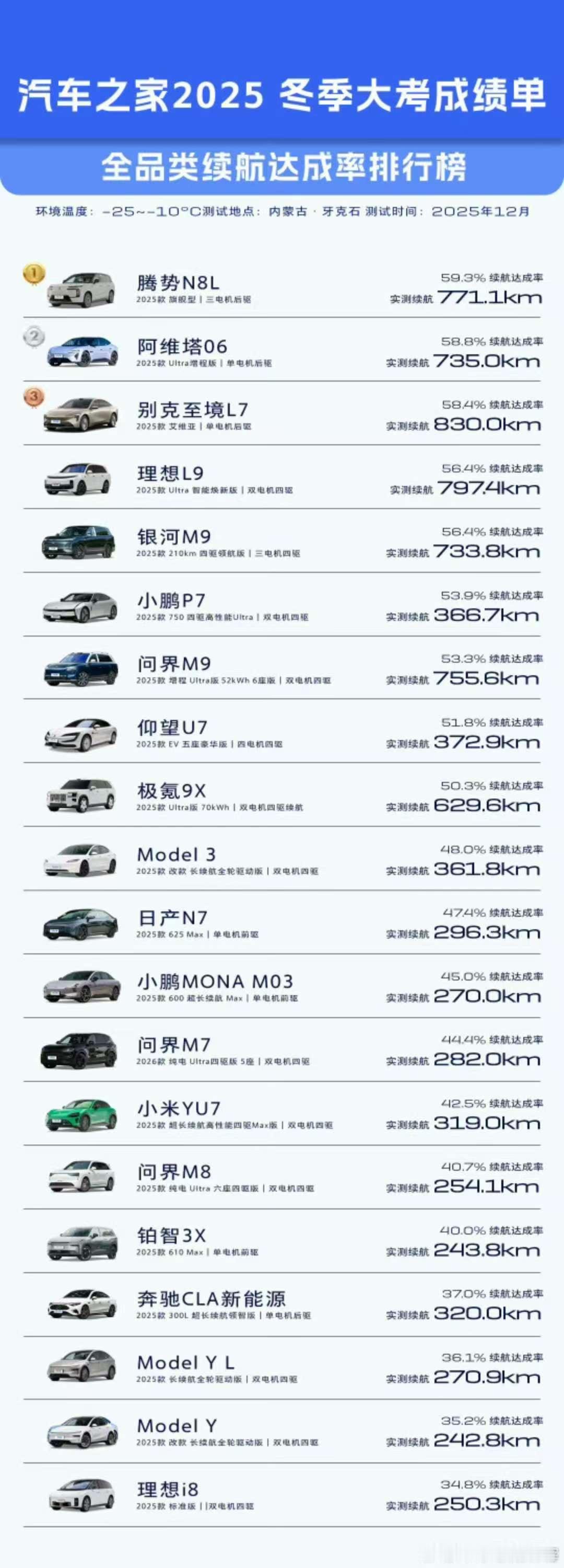 还抱着“电机多就费电”老想法的朋友, 看看这次冬测, 三电机腾势N8L的混动榜第