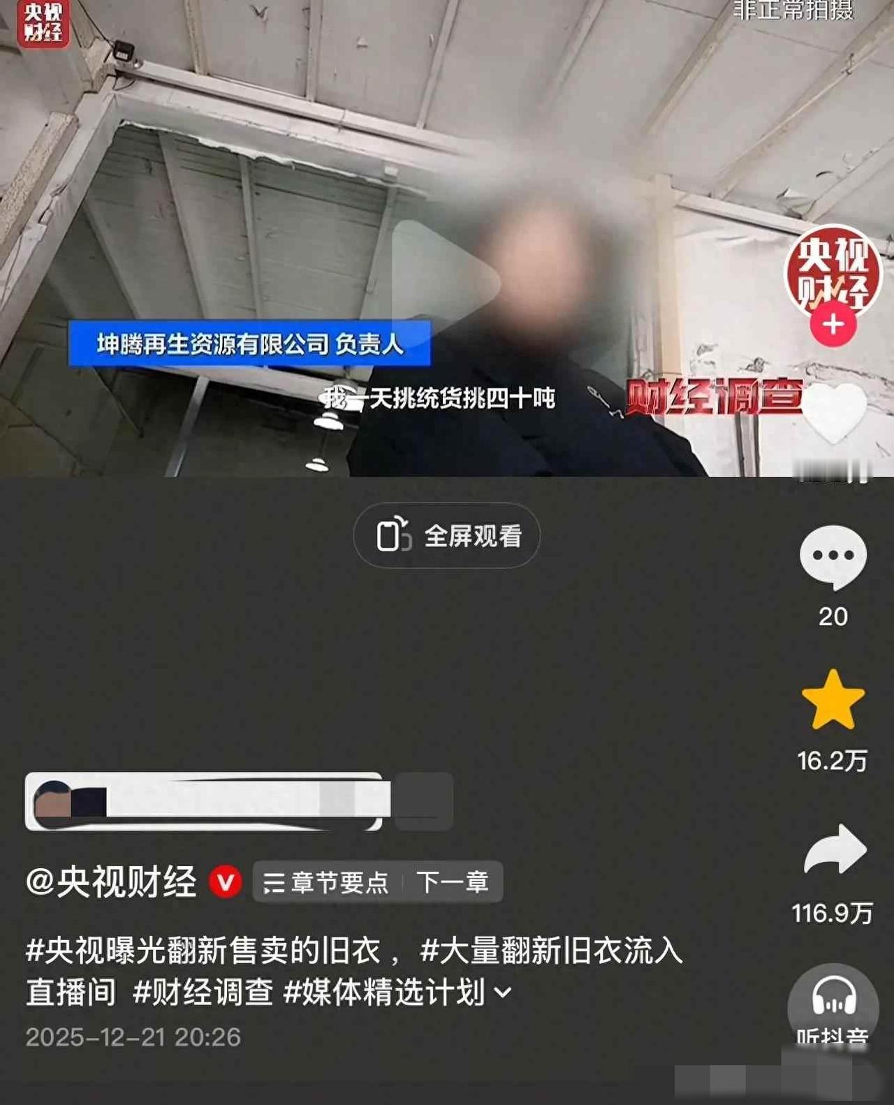 央视曝光旧衣回收骗局,遍布全国各地,丧心病狂,连儿童也未幸免 小区里刷着“公益捐赠”“爱心传递”的旧衣回收箱,想必大家都不陌生。 家里清理出的旧衣服,尤其是孩子穿小的干净衣物,扔了可惜,不少人都会细心叠好,满怀善意地放进箱子里,盼着这些衣服能送到偏远地区需要帮助的人手上。 可谁能想到,这份沉甸甸的善意,早就被一群黑心商家盯上,变成了他们一本万利的生意,甚至连孩子的衣物都没放过。 央视记者的一次暗访,彻底撕开了这个遍布全国的骗局。为了查清旧衣的真实去向,记者在几件旧衣服里藏了追踪器,像普通居民一样,把衣服投进了铁岭市不同小区的爱心回收箱。 本以为会追踪到公益机构或回收处理厂,结果却让人脊背发凉——几天后,追踪器的信号指向了60多公里外一个挂着“玉米收储”牌子的仓库。 这哪里是什么粮食仓库,推开大门,里面堆得像山一样的全是从各地回收箱里拉来的旧衣服,空气中弥漫着一股陈旧腐朽的味道,有的衣服上还沾着明显的污渍和灰尘,根本没人清洗消毒。 仓库管理员倒是直言不讳,说他们就是干这个的,这些从回收箱里来的衣服,在他们这儿有个专门的名字,叫“箱货”。 不止铁岭这一个窝点,记者带着追踪器在佳木斯、济南等地调查,发现各地的旧衣回收箱几乎都是这些黑作坊的“货源基地”。 这些人之所以敢明目张胆地冒用公益名义,就是摸准了老百姓的善心,知道打着“爱心捐赠”的旗号,能收到更多更好的旧衣服。 而那些被我们寄予希望的旧衣,既没被捐赠,也没被正规回收利用,而是被拉到这些隐蔽的分拣厂,简单分分类就直接流向了市场。 更让人愤怒的是,这些没洗没消的旧衣服,最终竟然通过直播间卖到了消费者手上。 记者暗访发现,不少直播间打着“大牌尾货”“新品样衣”的旗号,把这些二手旧衣以几块、几十块的低价出售。为了掩盖真相,商家还特意准备了“微脏”“微瑕”的话术,绝口不提衣服是二手的。 有直播间负责人直言,靠着美颜和灯光,网民根本看不出衣服的真实品相,只要主播稍微忽悠几句,就很好卖。长春有家旧衣回收公司,一天就能卖出几十吨这样的旧衣服,其中一家合作的直播间,开播半小时就卖了近70件,一场直播下来能卖半吨衣服,营业额超万元。 当记者质疑衣服发霉时,对方竟然说这是正常现象,还坦言为了控制成本,所有从分拣厂进来的旧衣,都不会清洗消杀,拿回来直接挂架售卖。 品相好一点的旧衣,下场更“高级”。 它们会被挑出来送到翻新工厂,用化学药剂处理后,挂上随处可买的崭新吊牌,包装得整整齐齐,当成新品出售。记者在华南一家尾货市场调查时,在“行家”带领下才找到隐藏的翻新货源。 这些翻新衣服做工精细,非专业人士根本看不出破绽,全国各地的直播间和实体店都会来这儿进货。 河南商丘一个直播基地,靠着卖这种翻新旧衣,20多个直播间平均每个日入数万元。而那些被我们精心整理的儿童旧衣,也混在其中,经过简单包装就被卖给了不知情的家长。 一边是老百姓毫无保留的善意捐赠,一边是黑心商家丧心病狂的暴利收割,这条旧衣回收的黑产业链,骗的是善心,赚的是黑心钱,还可能危害消费者的健康。 可怕的是,这种骗局已经遍布全国,从小区里的回收箱,到隐蔽的分拣厂,再到热闹的直播间,形成了完整的利益链条。希望这次央视的曝光,能推动相关部门加强监管,彻底清理这些假冒公益的回收箱,严查背后的黑作坊和黑心直播间。 也提醒大家,以后捐赠旧衣一定要认准正规的公益渠道,别让我们的爱心,变成滋养骗局的土壤。