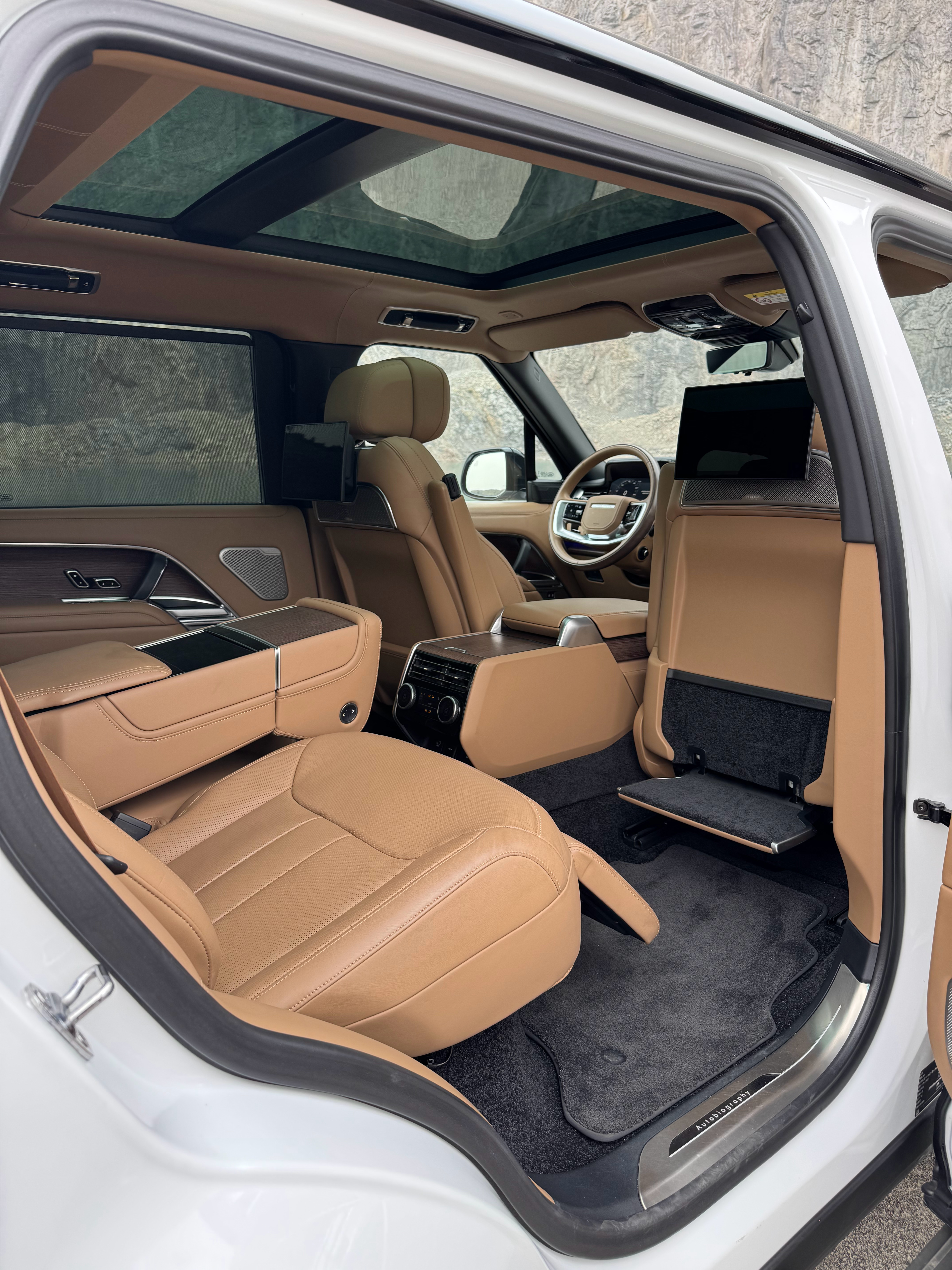 商人的周末,当然要开 2025 款 3.0 L6 400PS 揽胜行政典范加长版富士白配琥珀褐还得有豪华温莎真皮,才行。