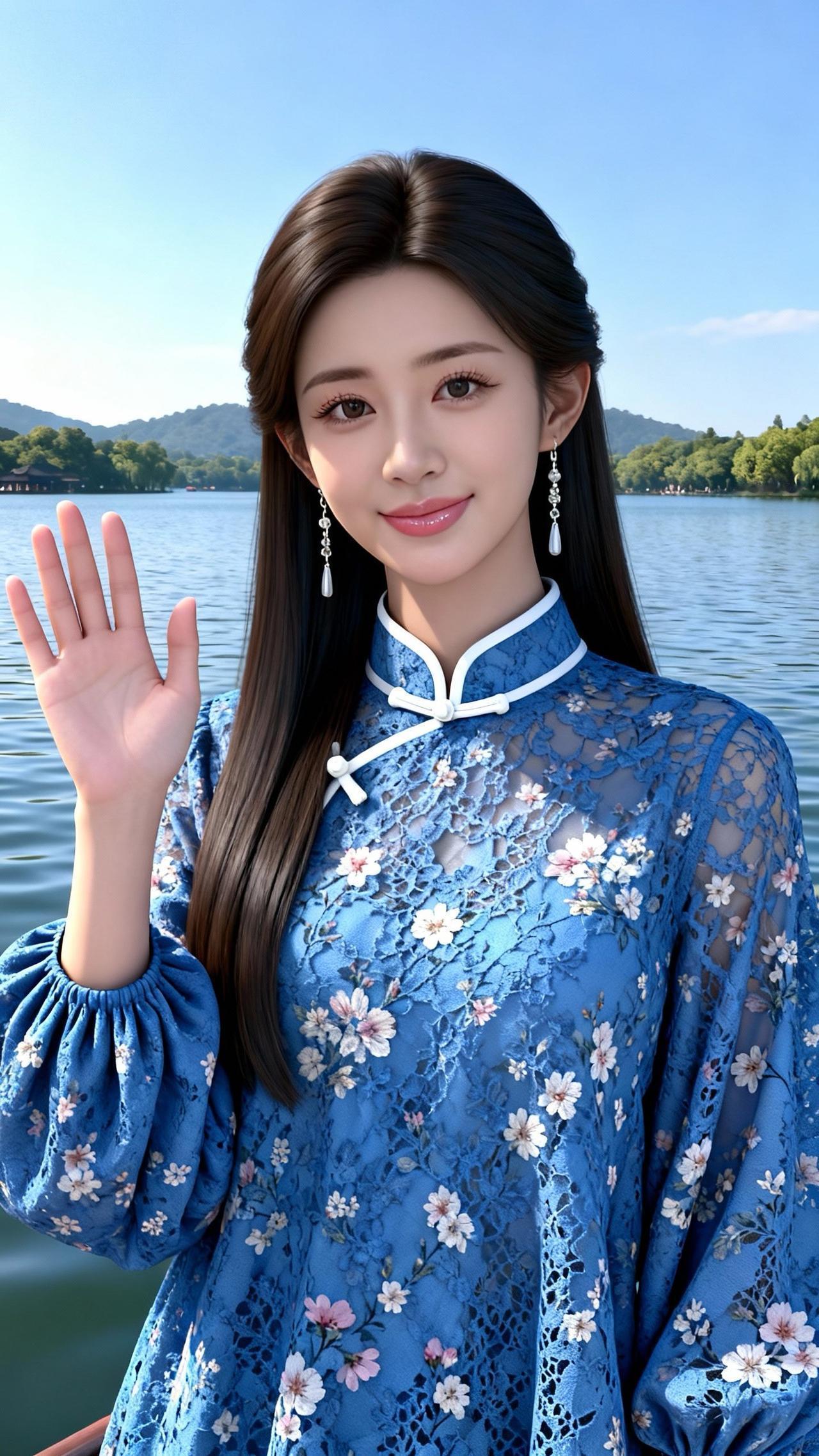 她踩着土路来赴一场田野的邀约棕色裙裾扫过干裂的泥辙蕾丝是城市捎来的精致落在