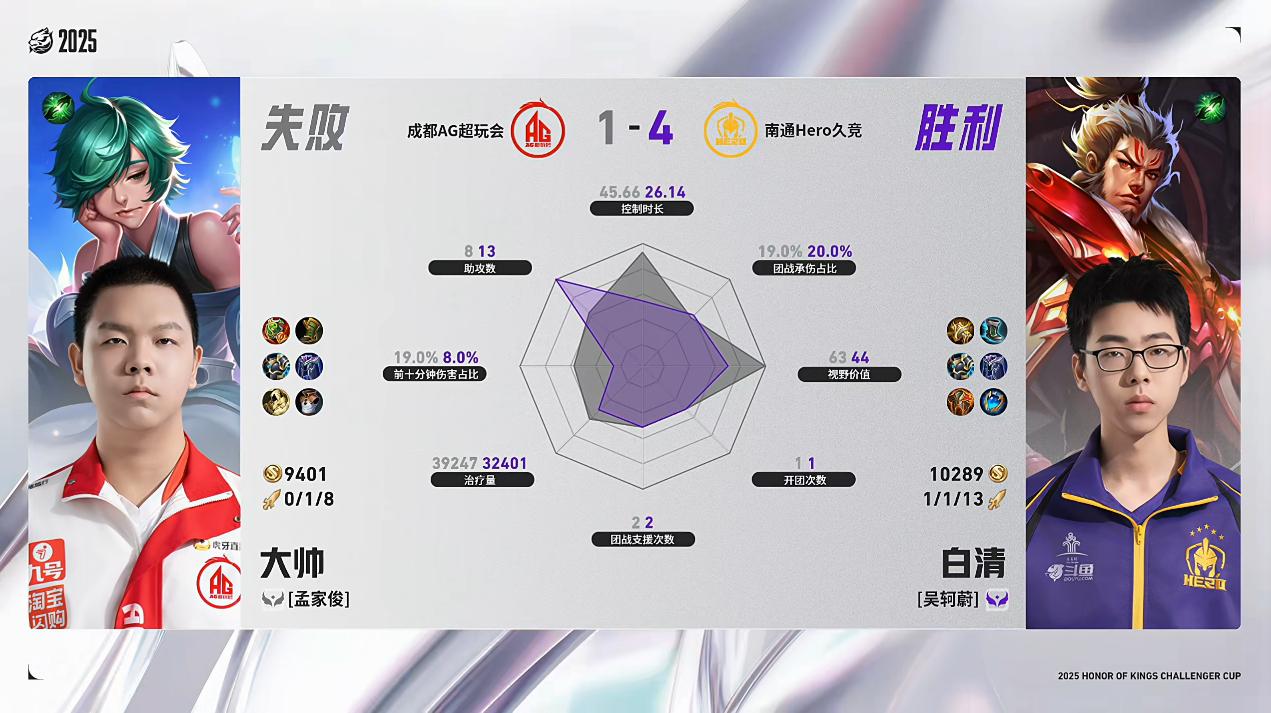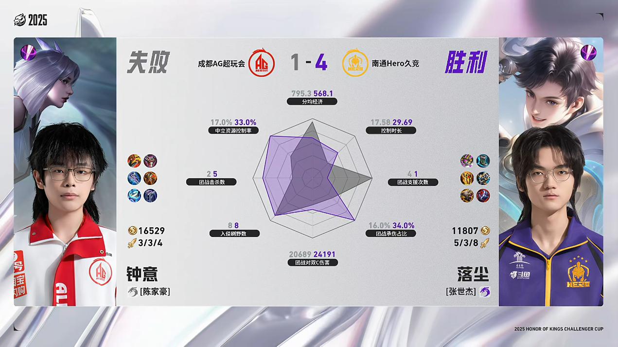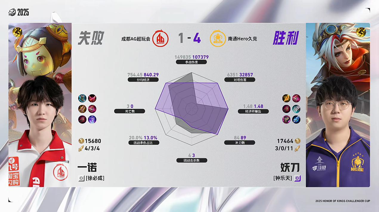 Hero/AG第5局数据对比:坦然对双C伤害拉满,一诺参战伤害高