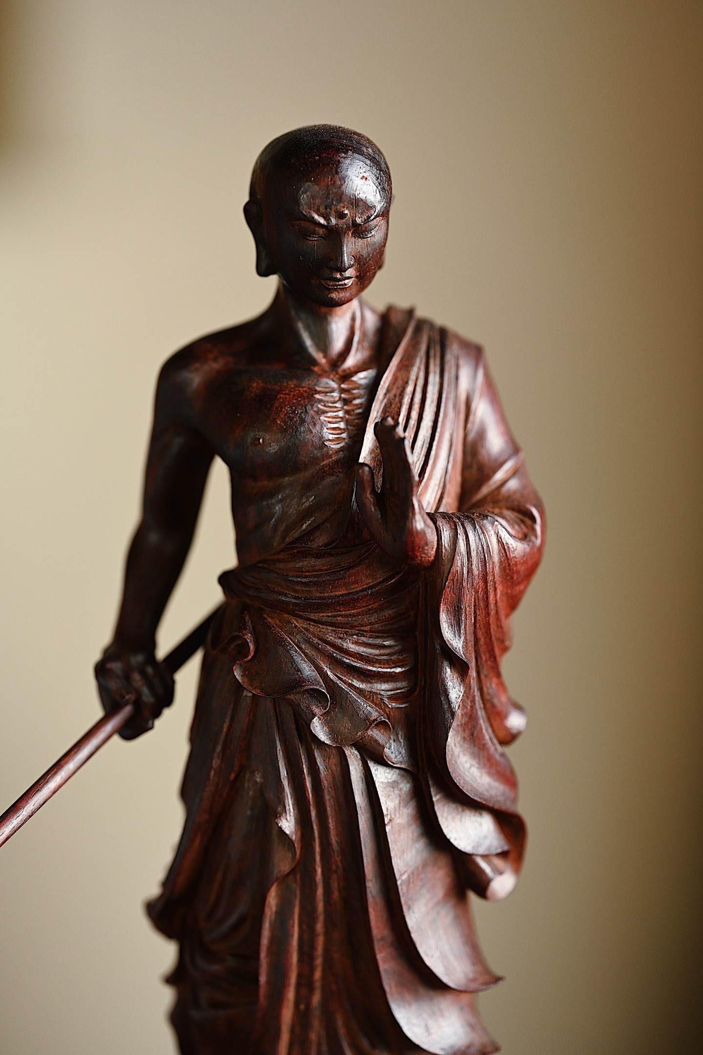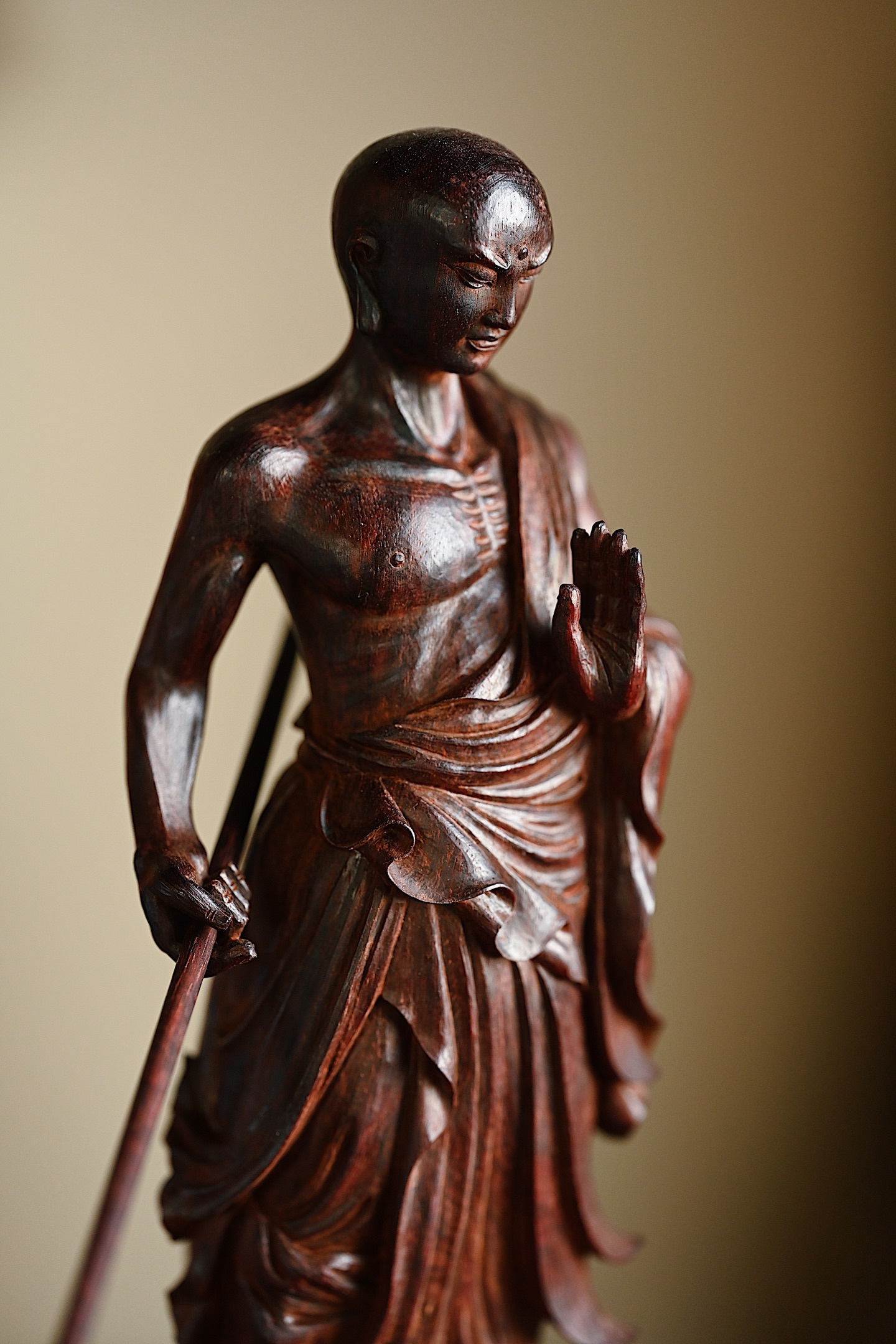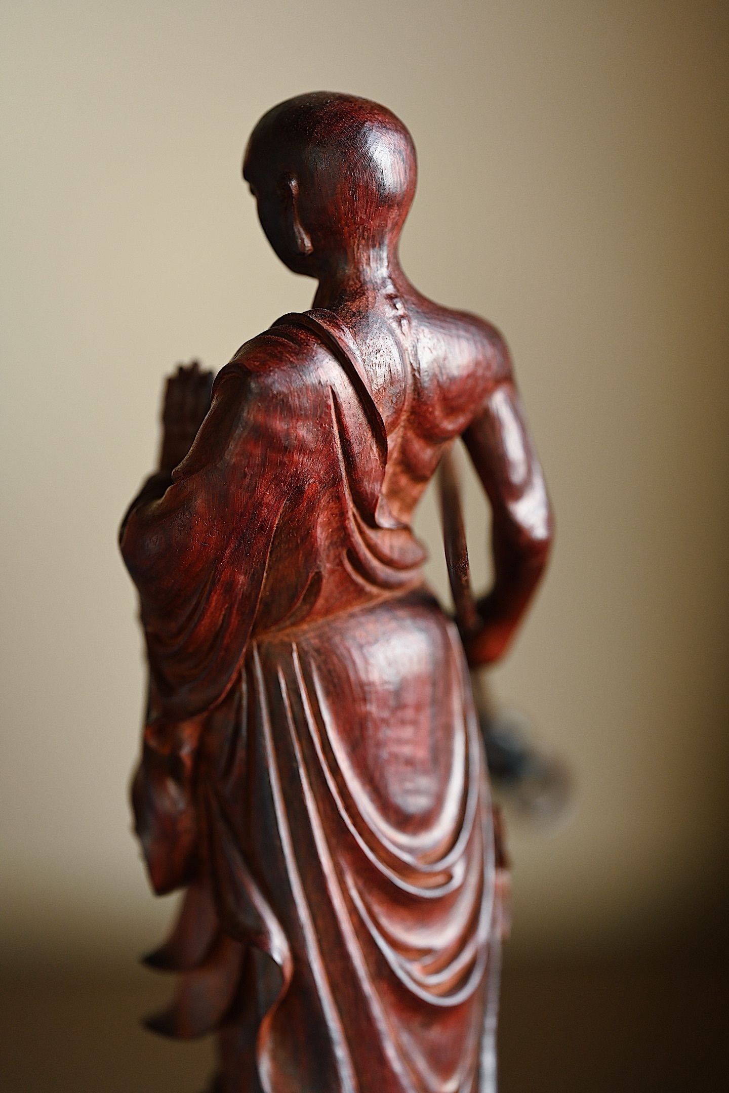 小叶紫檀 | 地藏王法相慈祥庄严,面容宁静智慧,身着袈裟,法体金彩为饰,左手托宝