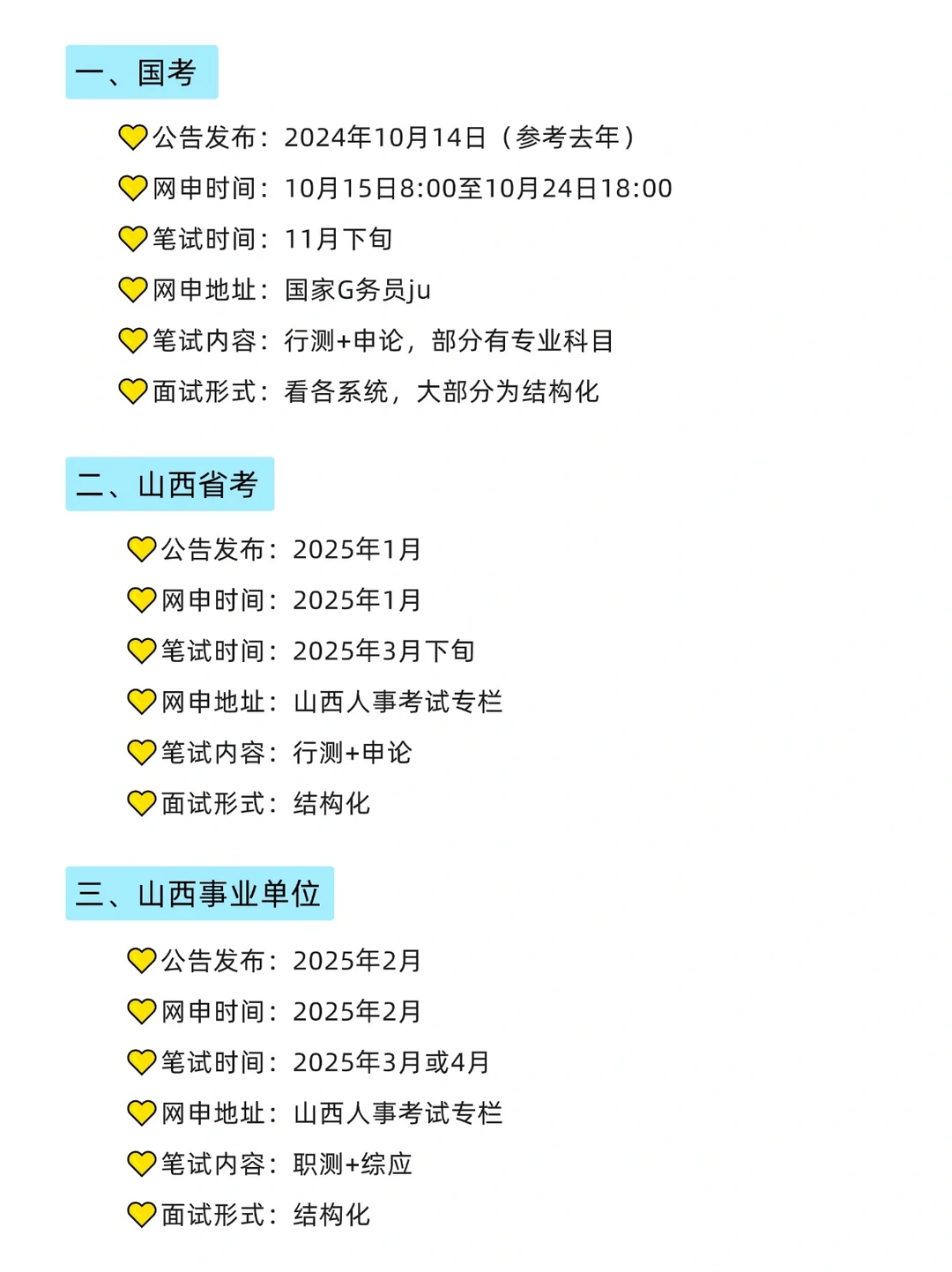💛山西事业单位:网申2025年2月,笔试时间3月或4月