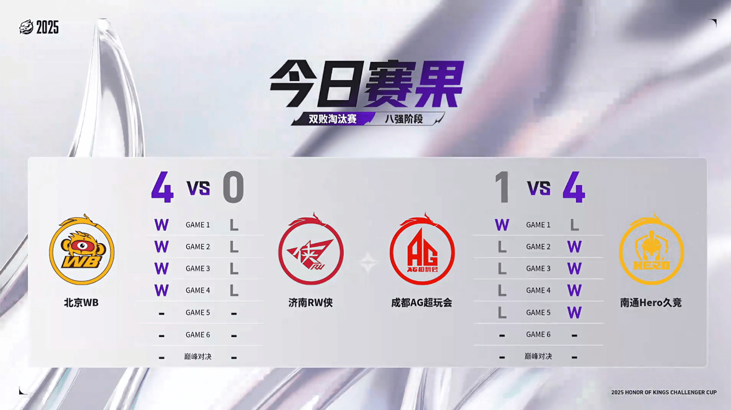 2025王者荣耀挑战者杯双败淘汰赛D6比赛结束,来看看[今日赛果]吧!