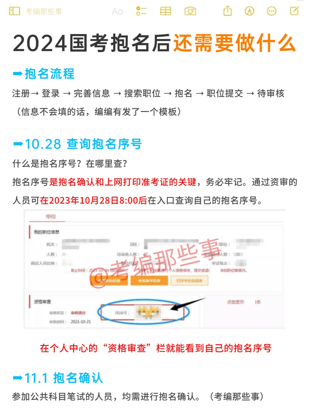 抱名序号是抱名确认和上网打印准考证的关键,务必牢记。通过资审的人可在2023年10月28日8:00后在入口查询。