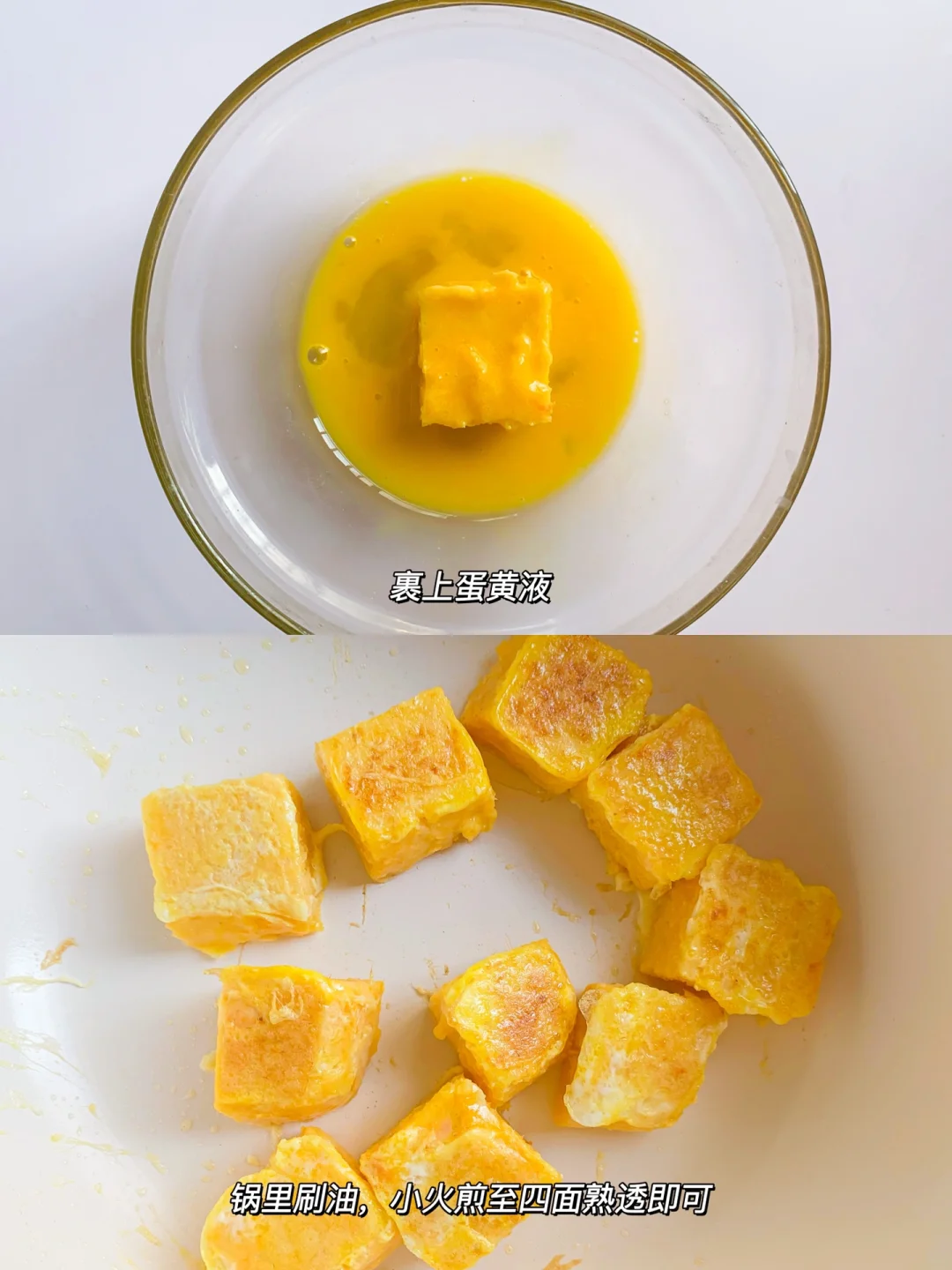 ✅裹上蛋黄液,四面煎熟,全程小火(我自己都忍不住吃了几个)