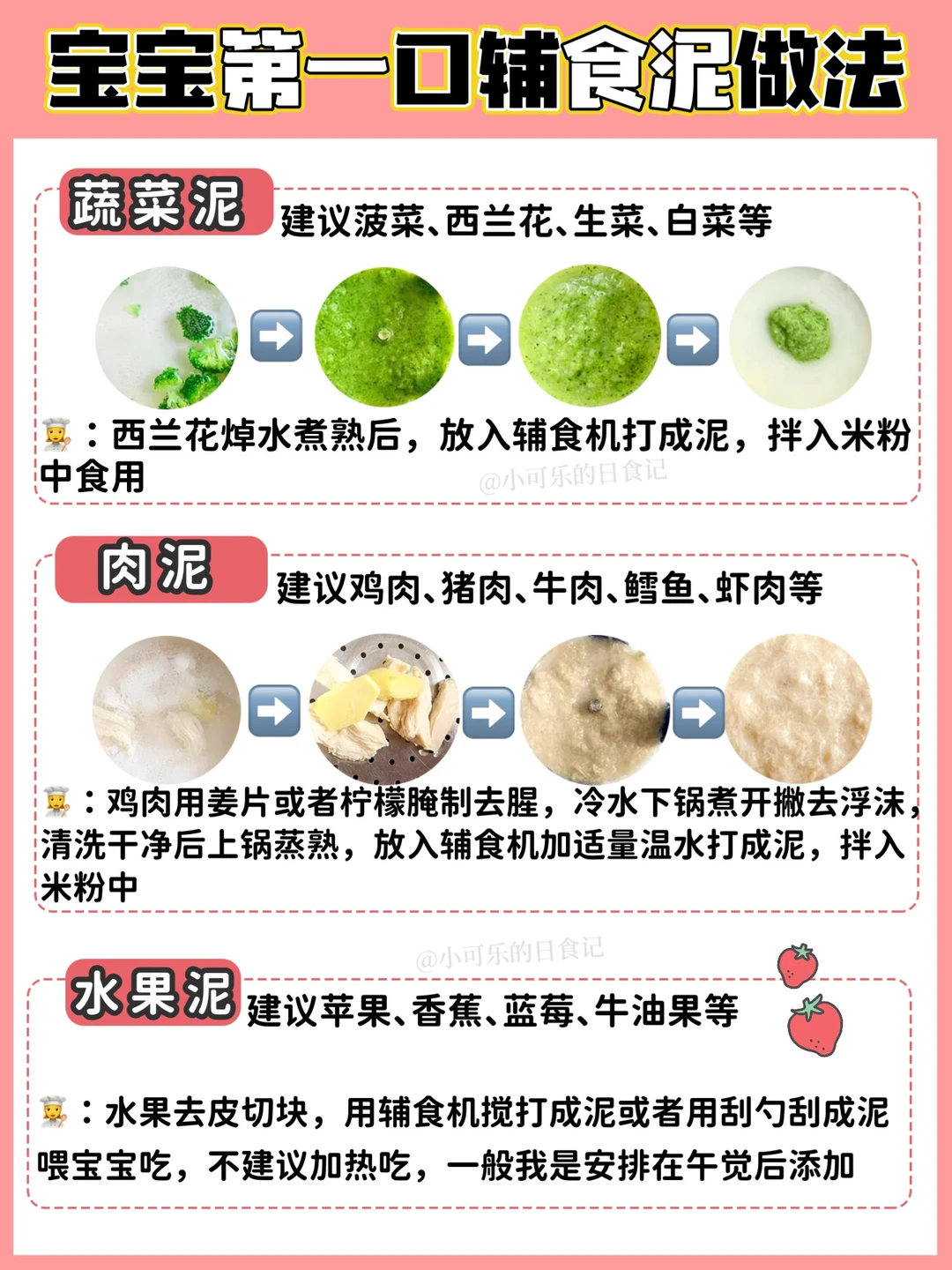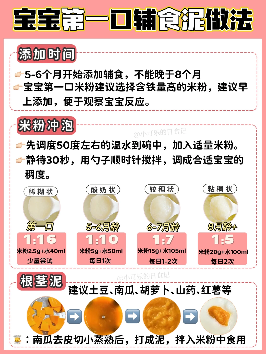 🔸高铁米粉➡️根茎类泥➡️叶菜类泥➡️水果泥➡️鱼肉类➡️粥➡️面条