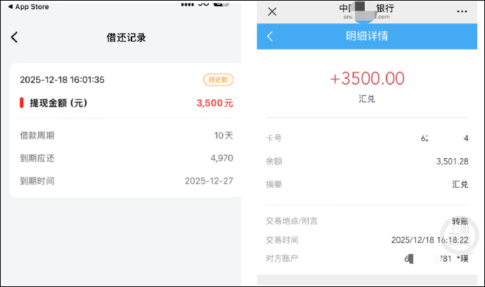 “我只是抱着试试看的心态填了一下资料,没想到20多分钟后,银行卡就收到了一笔转账。”12月25日,宫先生向记者回忆,2025年12月18日下午,他在苹果应用商场下载了一款名为“臻有钱”的借款App,填写了身份证、银行卡和手机号等信息后,并未看到任何审核流程。“既没有人脸识别,也没有电话核实,就直接给我放款了。”