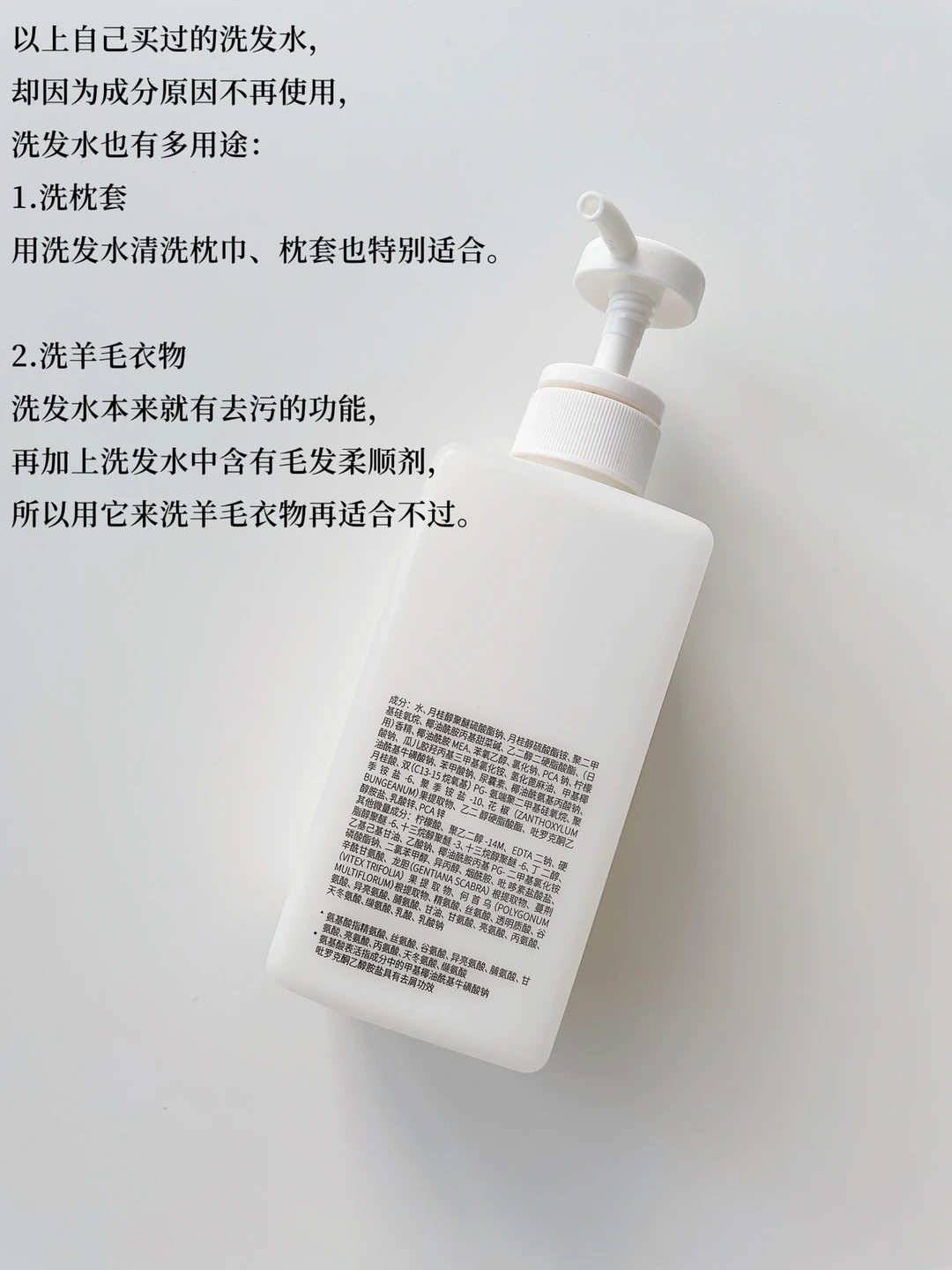 我要把手头上的这几款含有的先断舍离了,我不是一刀切,但为了不再让我头皮炎症复发,发质变好,我决定花点时间研究成分,并作出做明智的断舍离选择。物尽其用洗发水多用途: