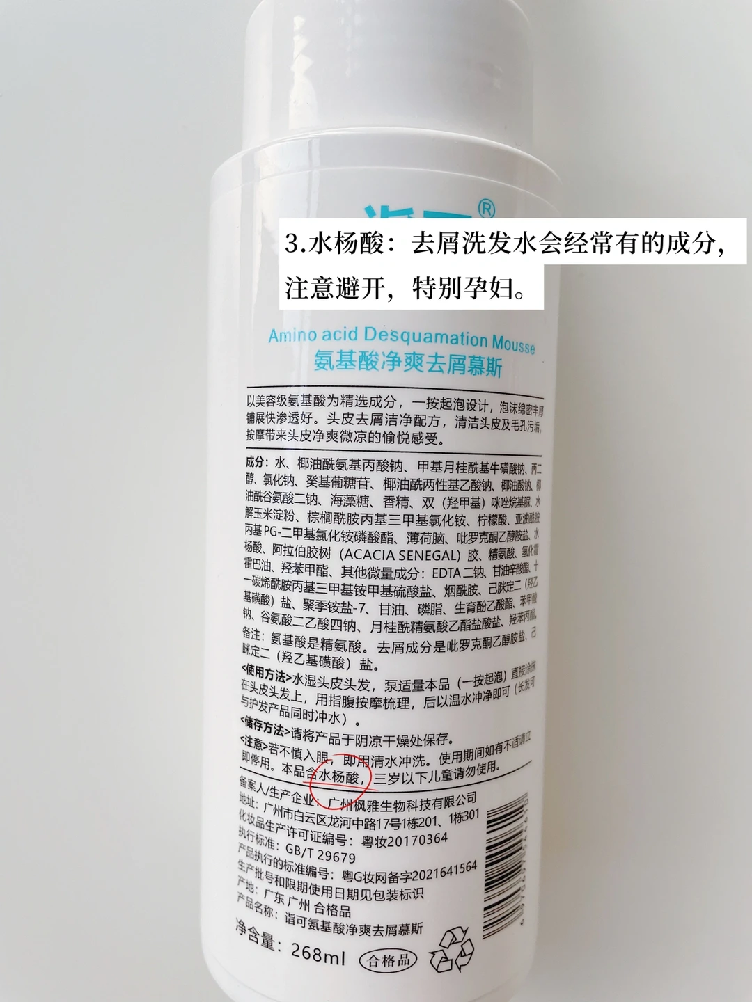 3⃣️水杨酸:去屑洗发水会经常有的成分,注意避开,特别孕妇。