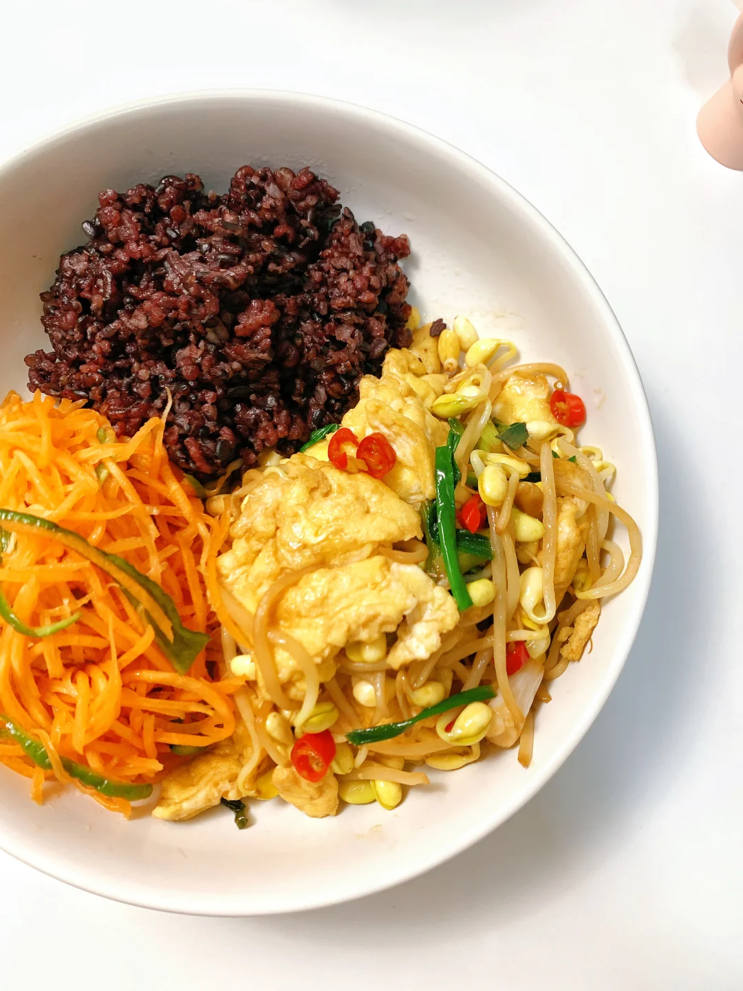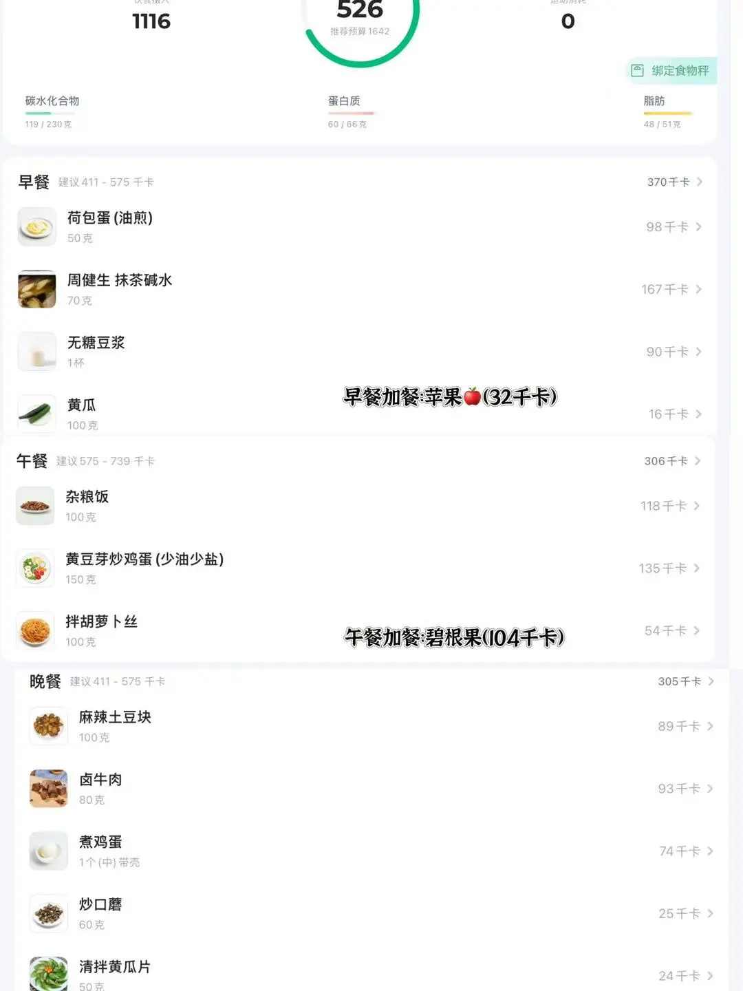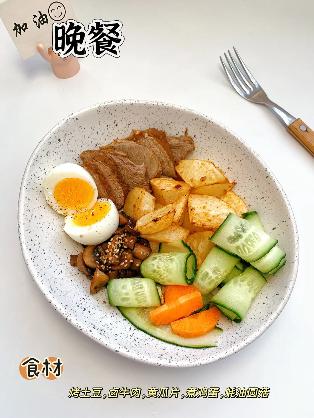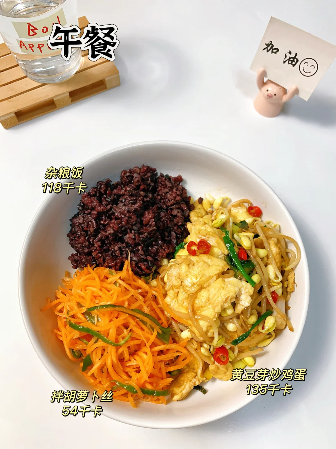 一日三餐 🥣 ✅早餐:无糖豆浆,抹茶碱水棍,黄瓜,煎蛋🍳 ✅午餐:杂粮饭,黄豆芽炒鸡蛋,拌胡萝卜丝 ✅晚餐:烤土豆沙拉碗 ♨️喜欢请看上图附做法,热量表~ [偷笑R]欢迎进入我的主页收藏我的食谱,分享我的生活化减脂餐……………………………………………………………