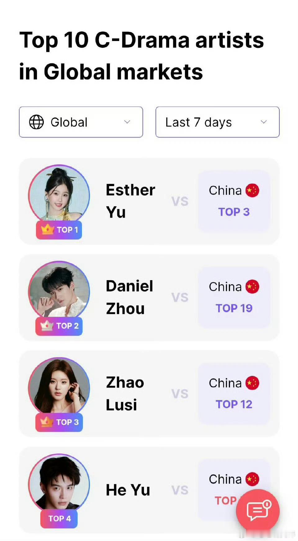 虞书欣《双轨》获得国际最受欢迎电视剧top1,全球艺人榜top1