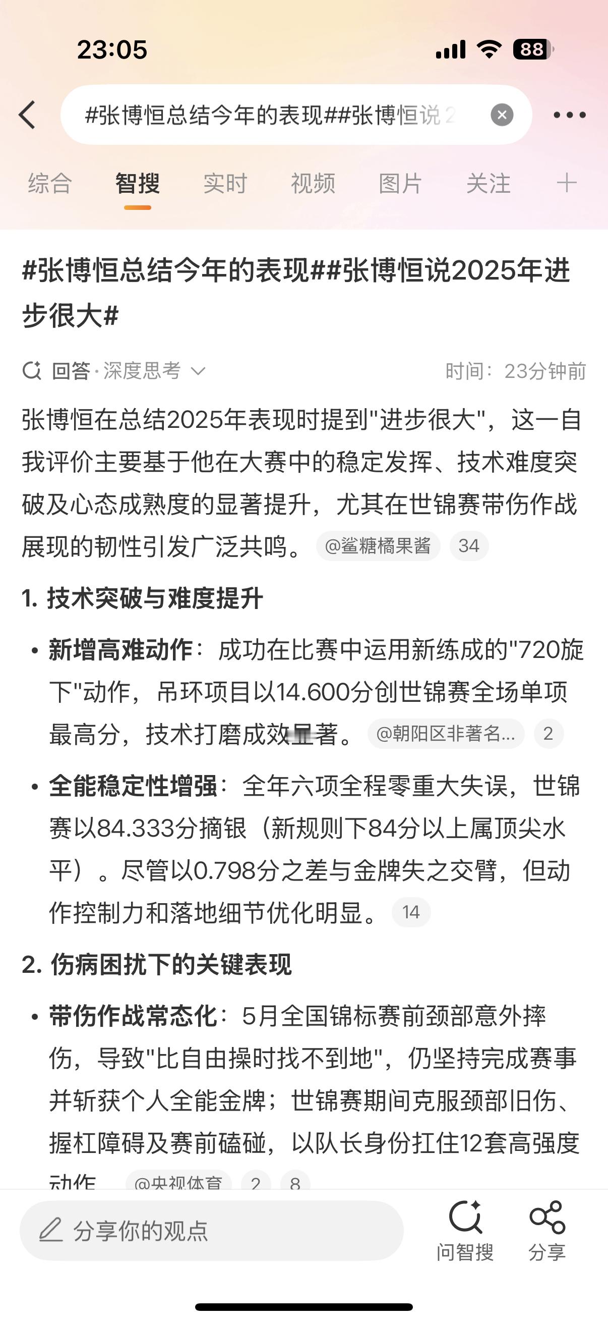 张博恒总结今年的表现看看张博恒的年终总结吧2025是洛杉矶奥运周期的第一年,这一年他参加了两项重要的比赛——世锦赛和全运会,虽然他说表现中规中矩,控制力还有欠缺,但在心态调整上他有显著进步!我个人觉得他稳定性也是很好的,在今年重要的比赛他都上满了六项并且没有出现特别重大的失误!2026年即将到来,希望他继续打磨技术,保持健康张博恒说2025年进步很大