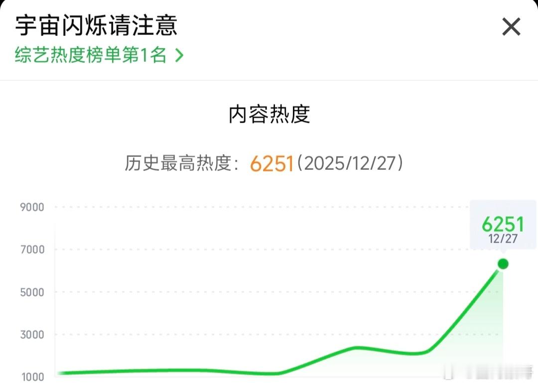王鹤棣今天中午12点上线的综艺宇宙闪烁请注意,目前已登顶🥝综艺榜、热播榜和飙升榜三项榜单,并且热度已高达6251,综艺里的绝对爆开!