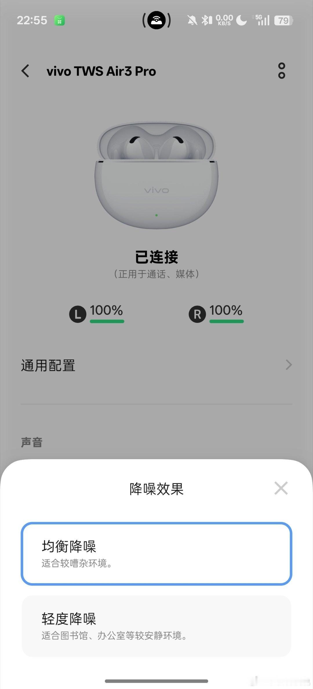 挺喜欢半入耳耳机的,最近139入手了一个vivo TWS Air3 Pro,半入耳还支持降噪,有均衡降噪和轻度降噪两个模式,实测还是有一些用的,虽然比不上入耳降噪,但是在地铁上听歌也能屏蔽很多噪音,续航也挺长的,性价比还是挺高的。