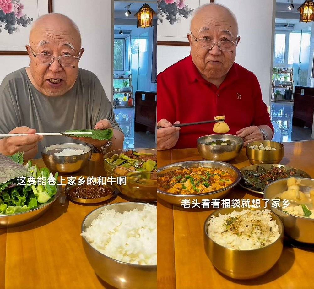 一会儿问“我的味增汤呢”,一会儿又指着一盘子烧鸡说“这烧鸟真是五蚂蚁”,错把鸡蛋比玉子,吃完还要再搭配一盘家乡的和牛。完事儿说一句“烧鸟配上味增汤,老头吃了是真想家乡”。