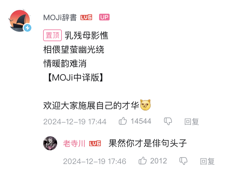 取日本文学之精华,辅以中华人民的打油诗智慧,便创造出了“中式俳句”。古有文人墨客借景抒情,今有智慧网友借俳句玩梗。
