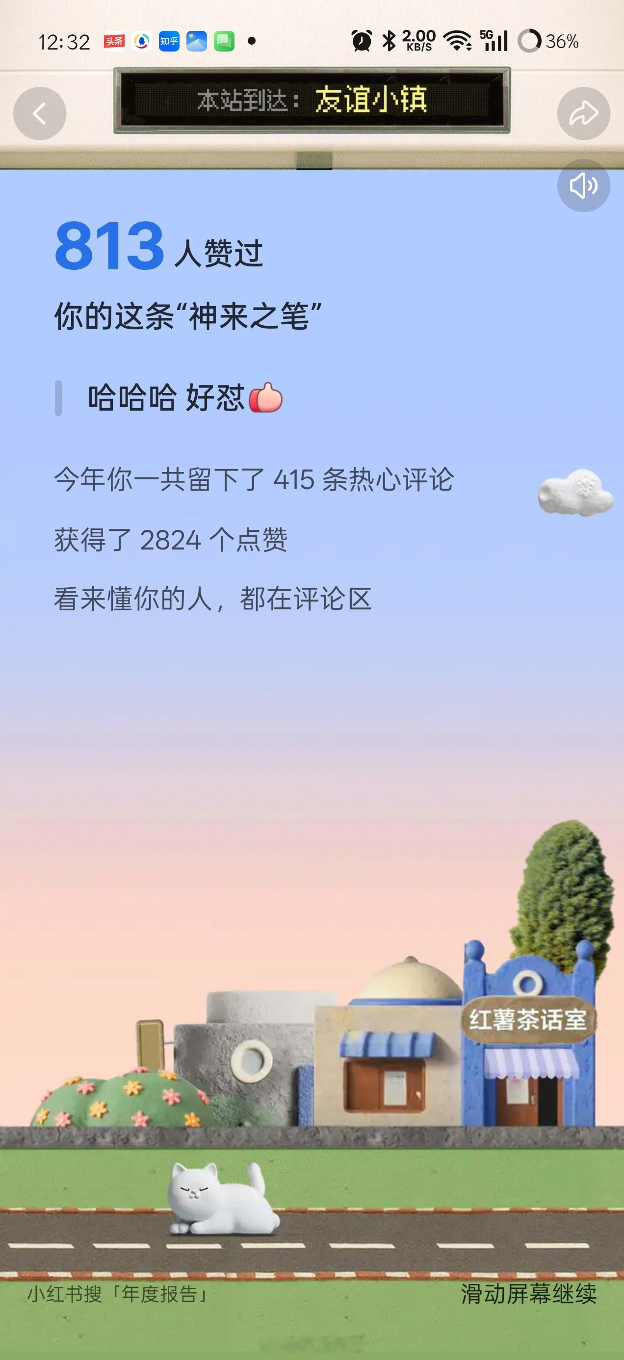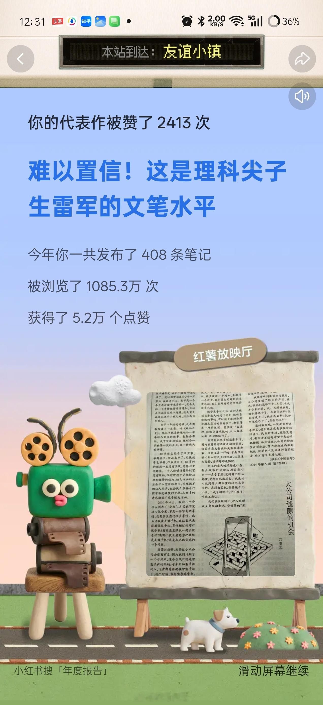 小红书也出年度报告 了,不过奇怪的是平台说我代表作是雷军那条,被点赞了2400次,实际并不是,点赞最高的是何同学翻车那条(但诡异的是我自己在自己主页都搜索不到,手动翻到4月的动态发现还在)
